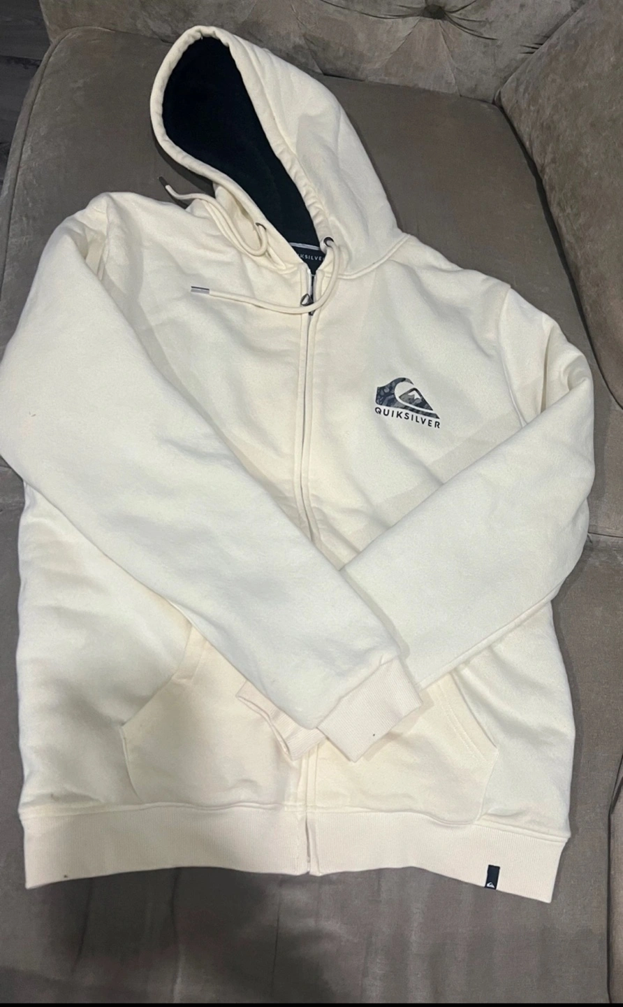 Cream coloured zip up hoodie for men. Lined with black fur cozy for winters.