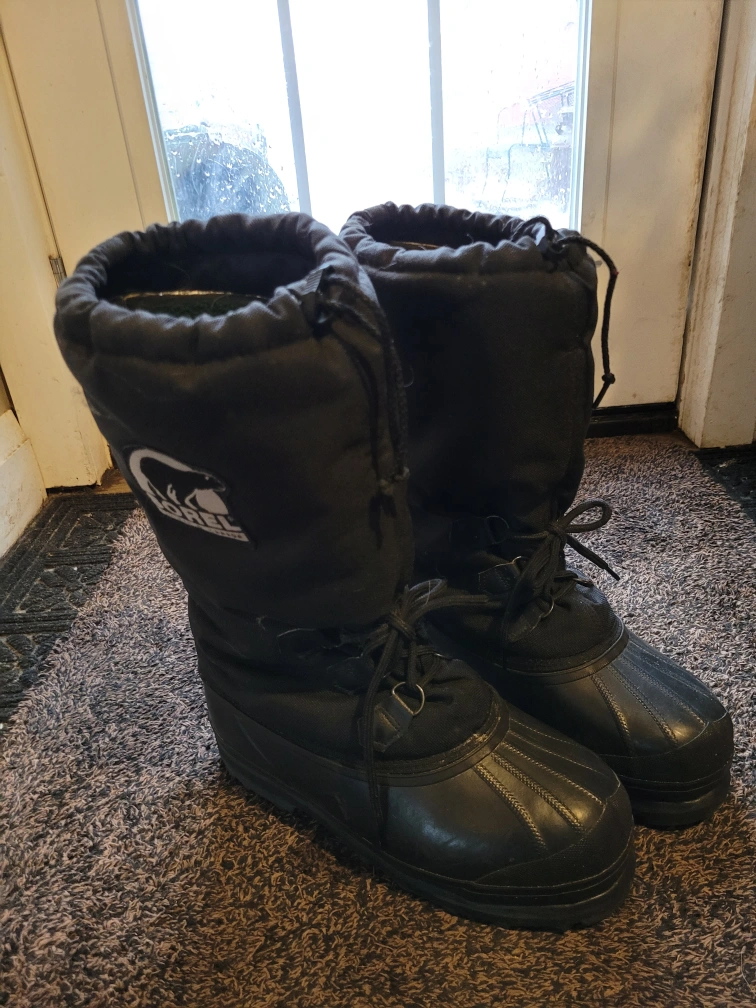 75Black winter boots with a rubber toe and sole. Insulated. wore a few times. selling as they are too big for me.