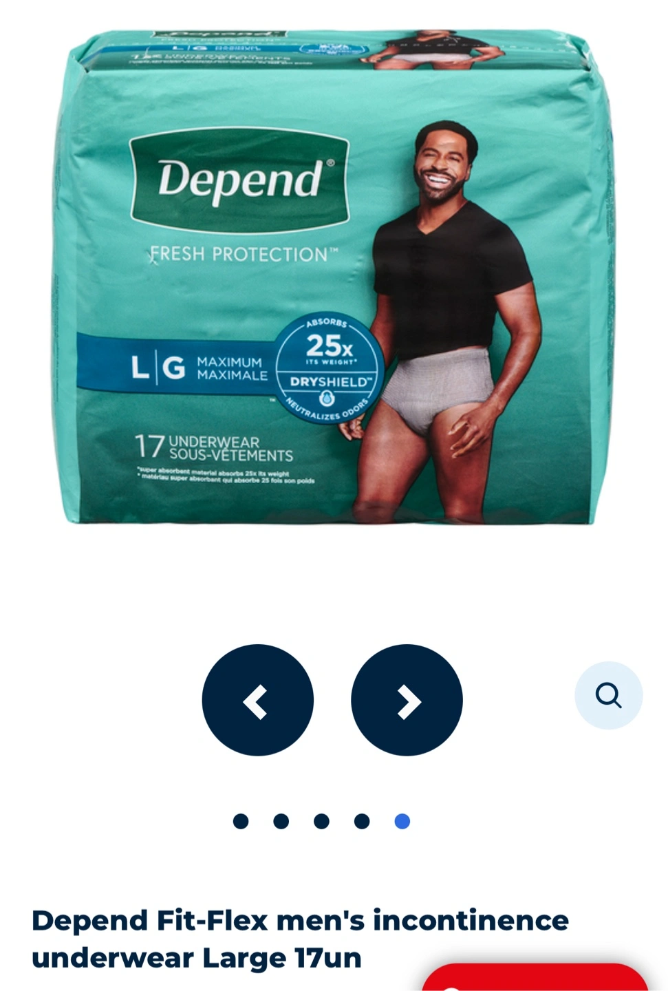 Protect against bladder leaks with Depend Fresh Protection Adult Incontinence Underwear for Men with Maximum Absorbency—for all day protection guaranteed*. Leaks don’t stand a chance thanks to a super absorbent core which absorbs 25x its weight, turns liquid into gel, and neutralizes odours. Our technology features a liner that keeps you dry throughout the day by wicking wetness away from your skin. Comfortably live your life with incontinence underwear that features a discreet fit, soft and smooth fabric, and a high-performance waistband that helps keep underwear securely in place. Find your fit with four sizes sizes—small/medium (26–34" waist), large (35–43" waist), extra-large (44–54" waist) and extra-extra-large (55–64" waist)—in a neutral grey colour. Also check out our Depend Night Defense Adult Incontinence Underwear for Men to protect against nighttime bladder leaks! *If you’re not completely satisfied with the fit of your Depend incontinence underwear, we can help. Purchase by 12/31/24. Mail in by 1/31/25. Online access required. Limit 1 per household. Original receipt/UPC required. Restrictions apply. See Depend website for details. Cash only The address is SE Marine Drive and Matheson Cres