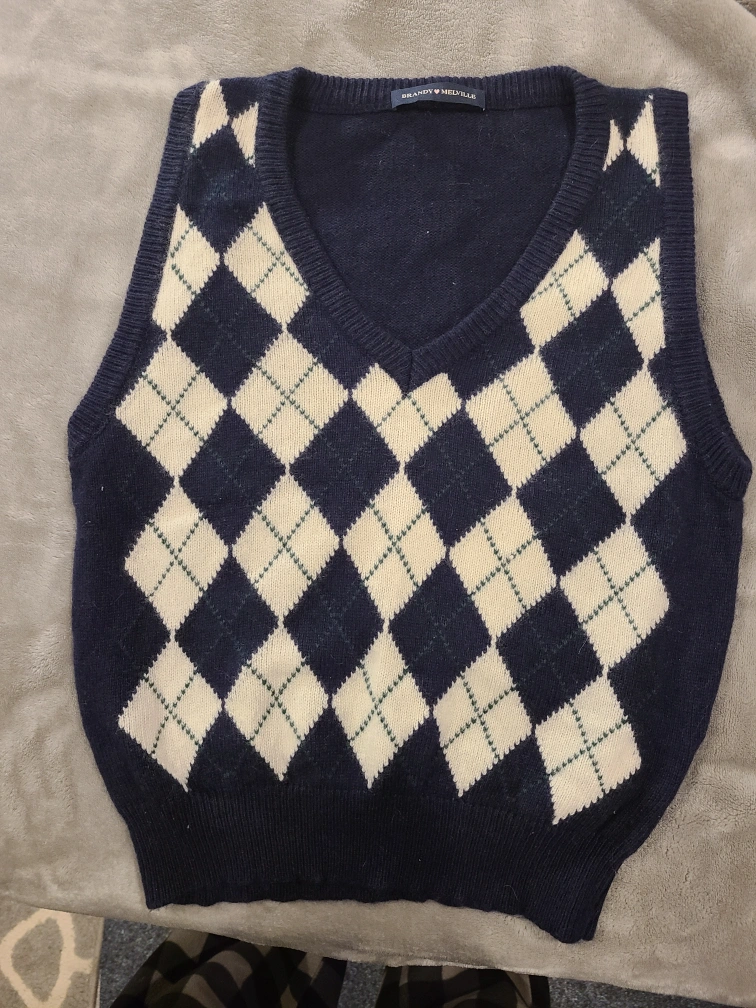 Brandy Melville Blue & White Argyle Sweater Vest