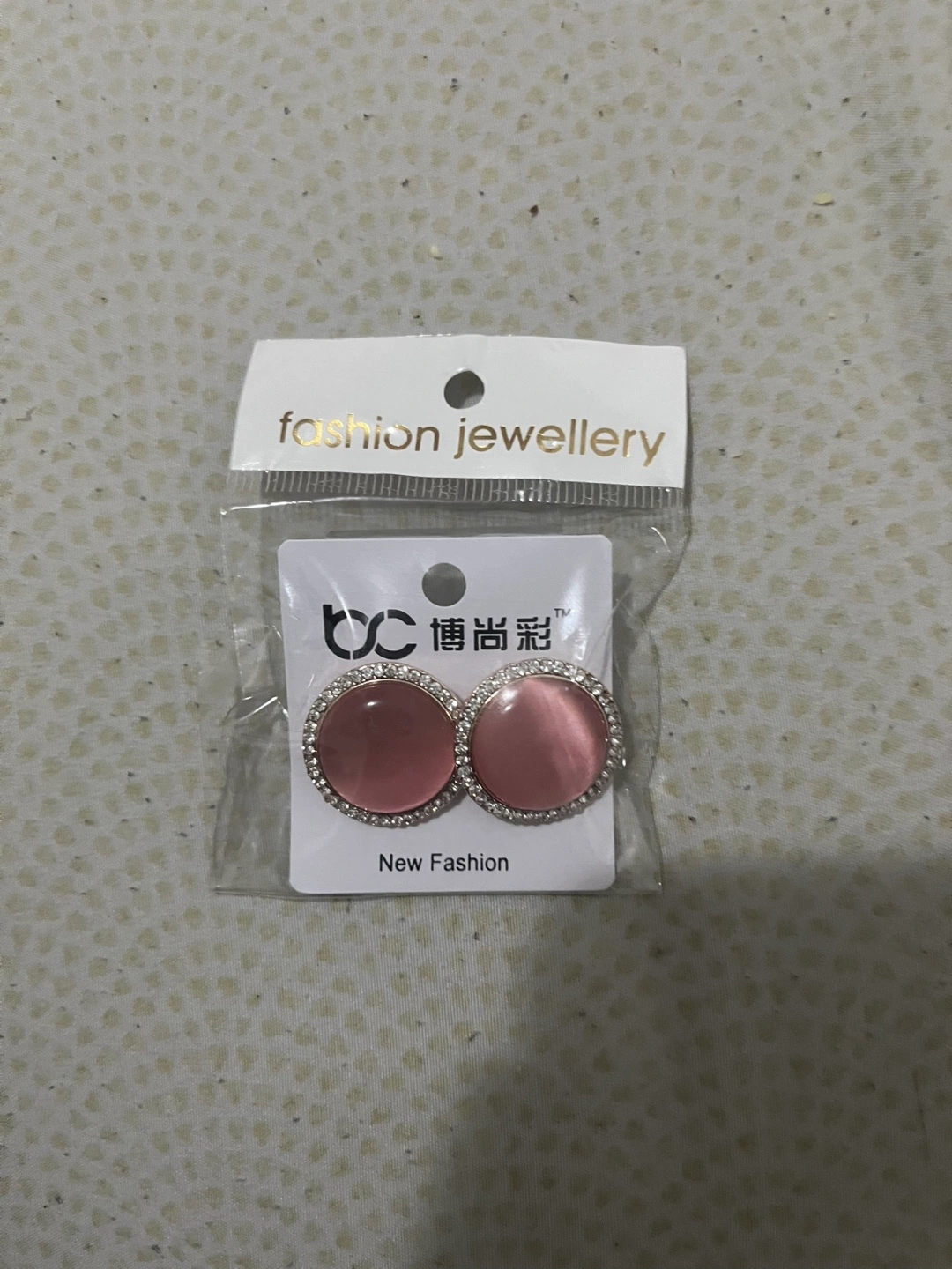 Round pink crystal earrings with silver posts. New, never worn. Comes in a plastic bag.