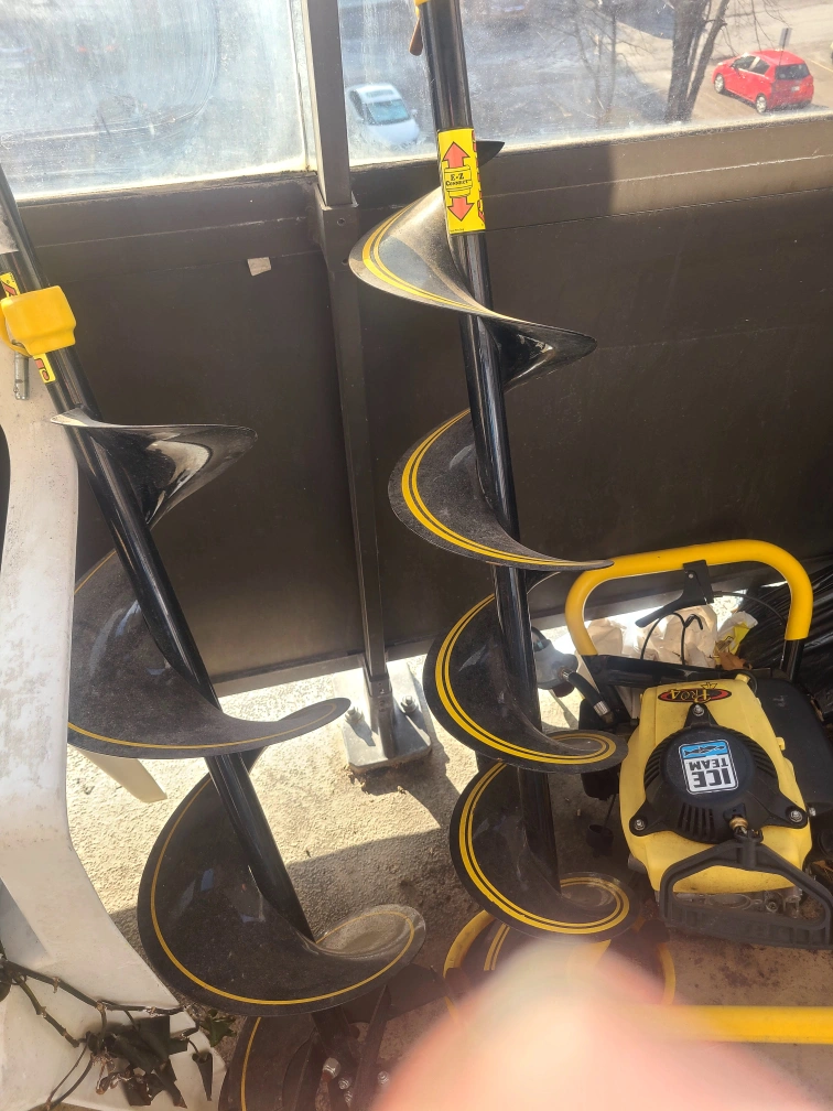 Propane powered ice auger. Includes two augers 8" and 10" Comes with a carrying case. Rarely used. Won't be ice fishing anymore.