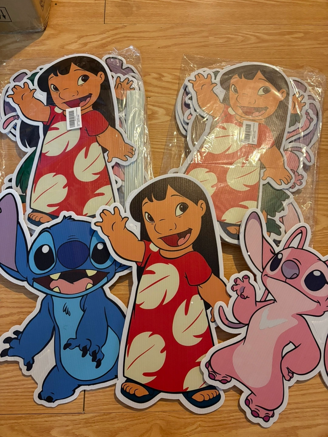 Lilo & Stitch party decorations. Includes stand-up cutouts, balloons, and posters. Great for a birthday party.