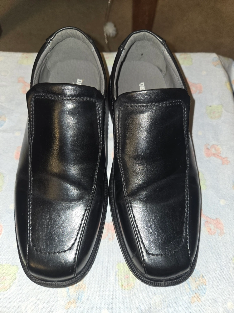 Black (Youth/Boys) dress shoes. Slip-on style. Size 5M. Great Condition. Worn once for a wedding.