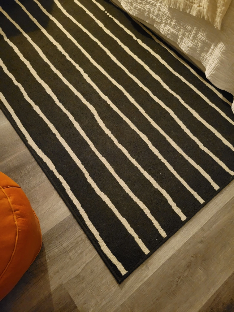 226Black and white striped rug. Good condition, no wear or tear. Low pile, Black & White stripes 133x195 cm
