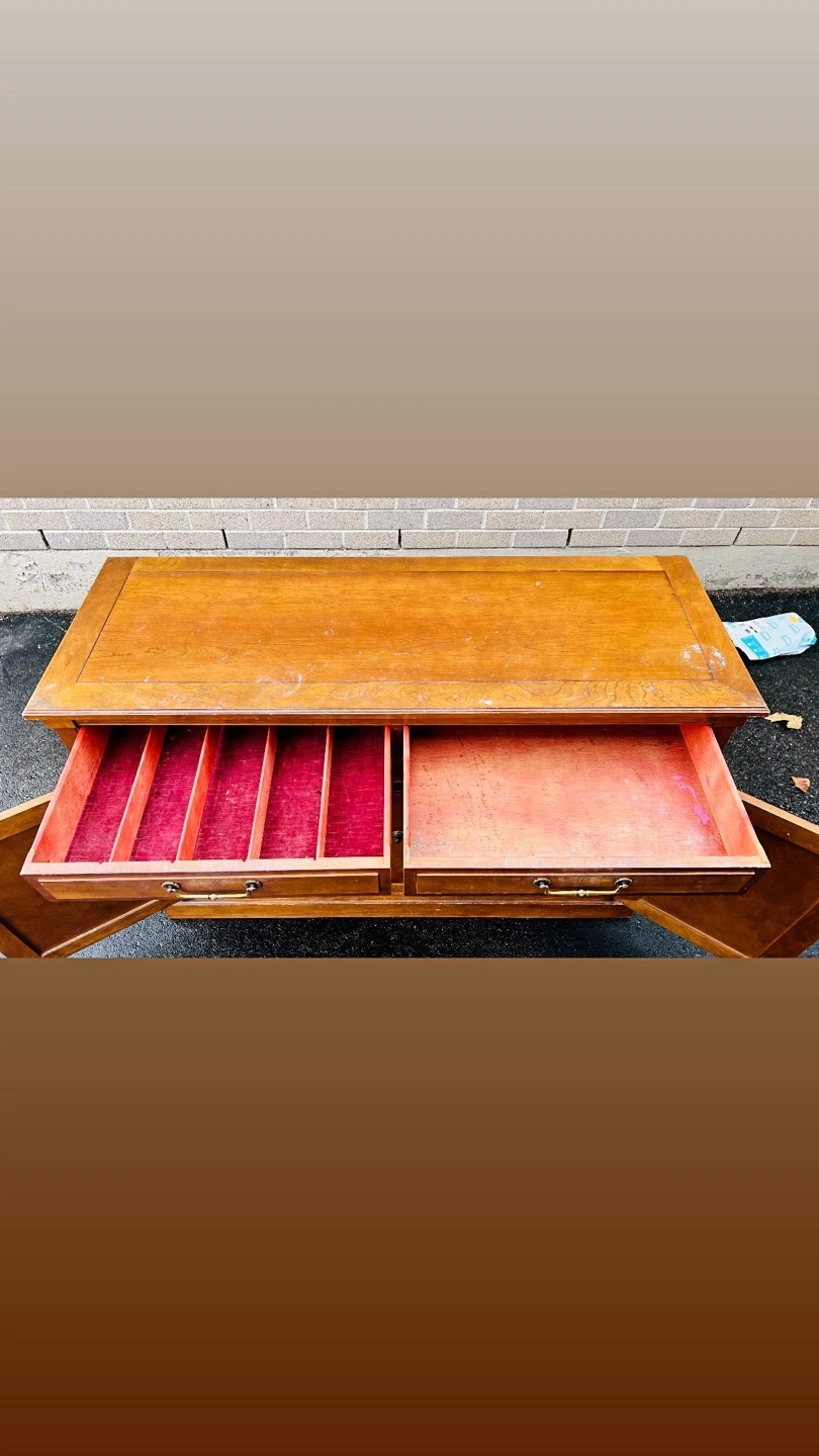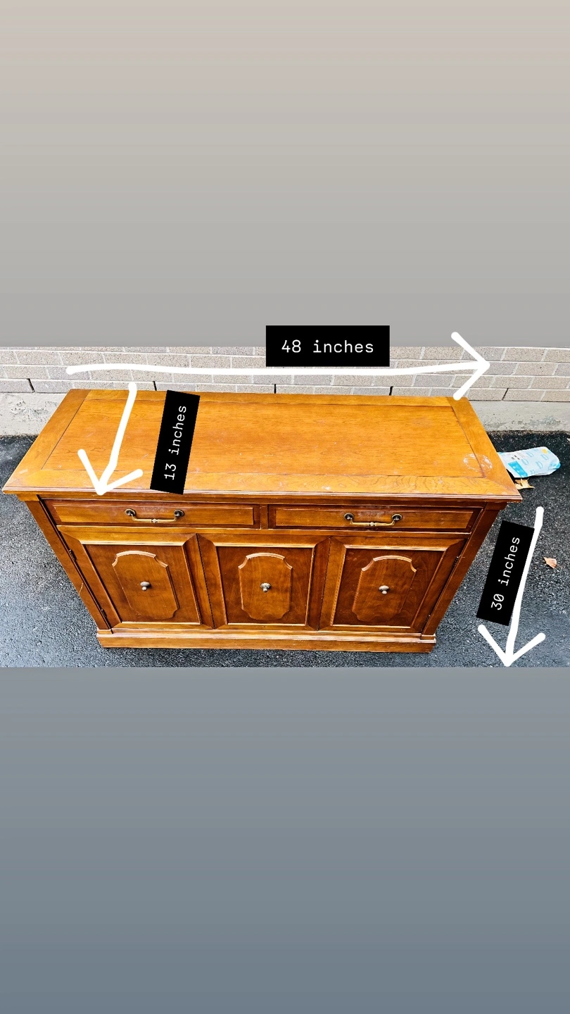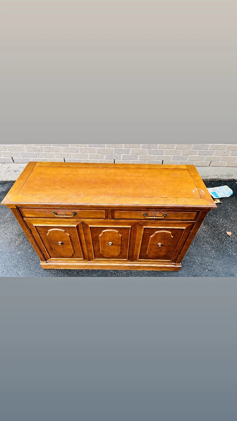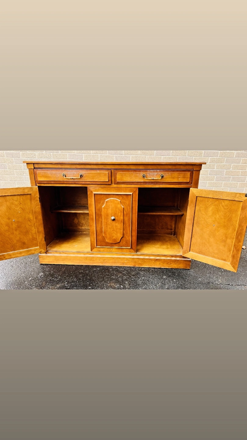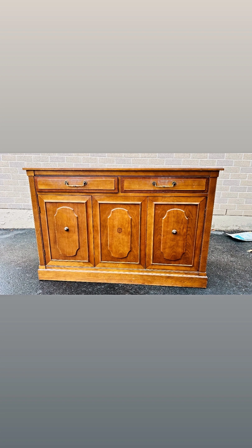 Wooden buffet cabinet with two drawers, three doors, and adjustable shelves. Has a cutlery drawer with velvet lining. Used as side table, garage uses, shoe rack, kitchen uses, other uses, etc Available at near Weston Rd & 401. Could be delivered at your home address too for an extra $25 around GTA.