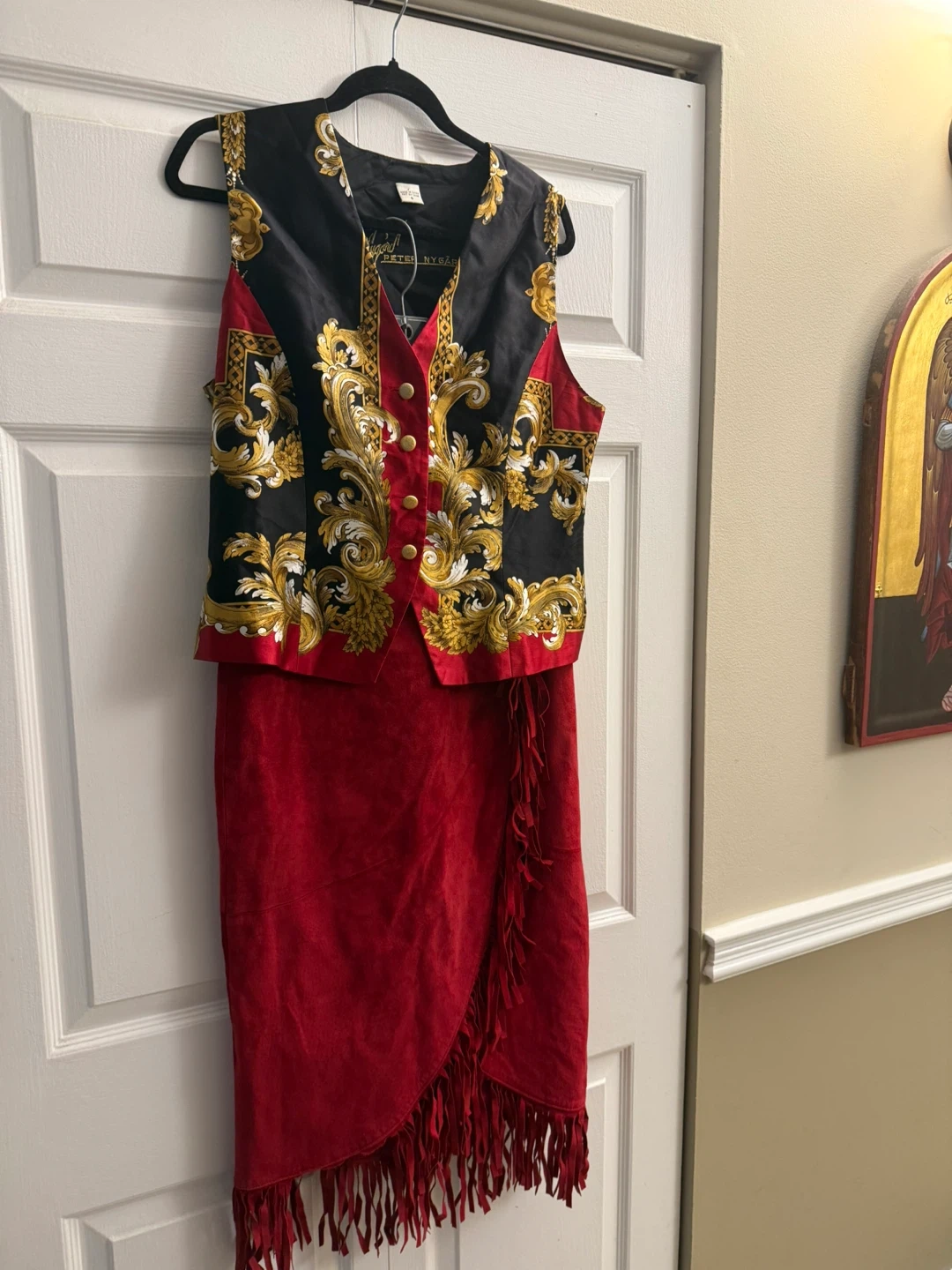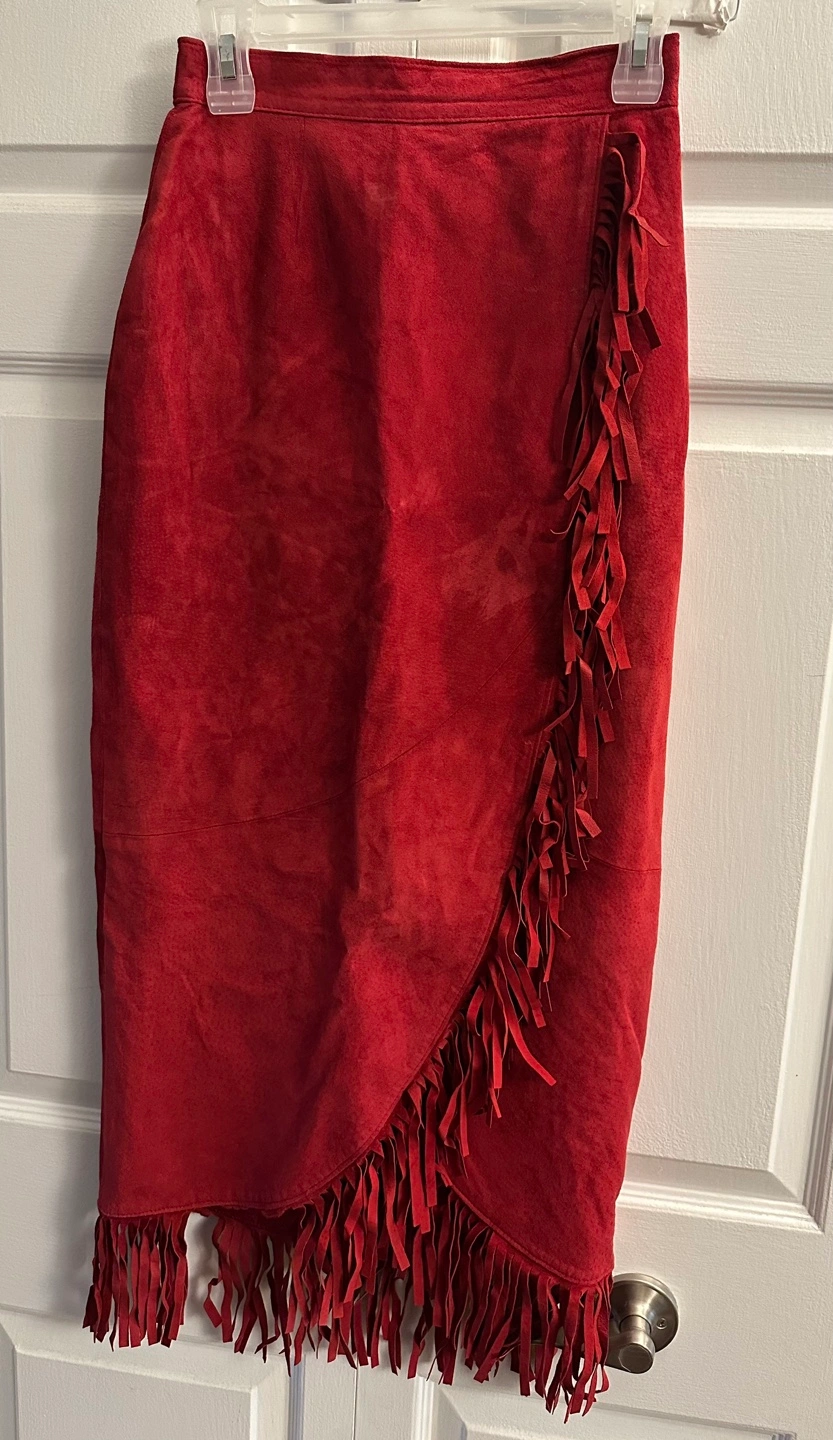 Dark Red suede skirt with fringe detail. Size 4.excellent condition. Vest shown in last picture sold separately for $25
