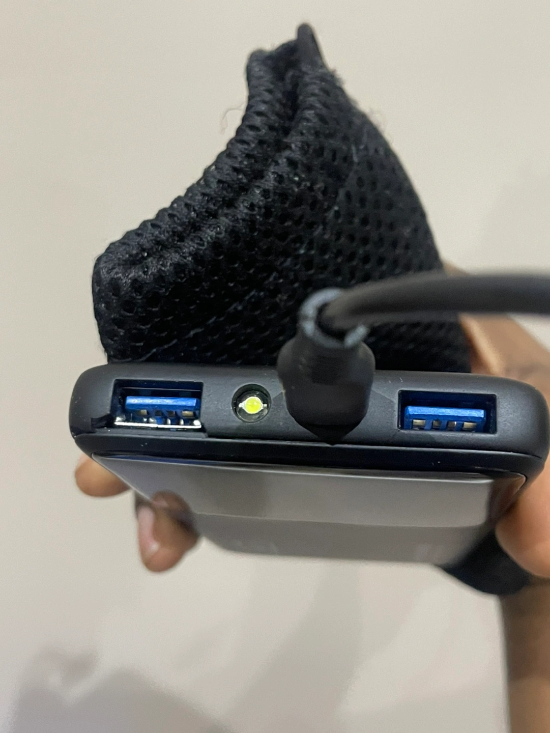 You’ll get the pouch, the USB cable, and the Powerbank.