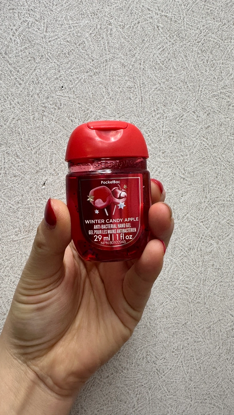 This is a winter special Bath & Body Works’ anti-bacterial hand gel or hand sanitizer in Winter Candy Apple scent. Fragrance notes are red apples, winter rose petals and candied oranges. If you wish to have a smell of sweet candy apples in your pocket, then you’ll like this scent. This is a new item. Retail price: $2.75 1 fl oz / 29mL