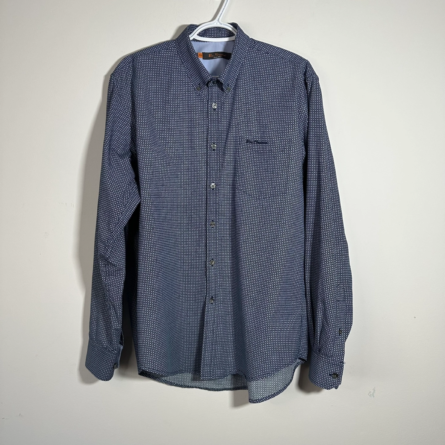 Ben Sherman Men Blue White Mini Square Long Sleeve Shirt XL