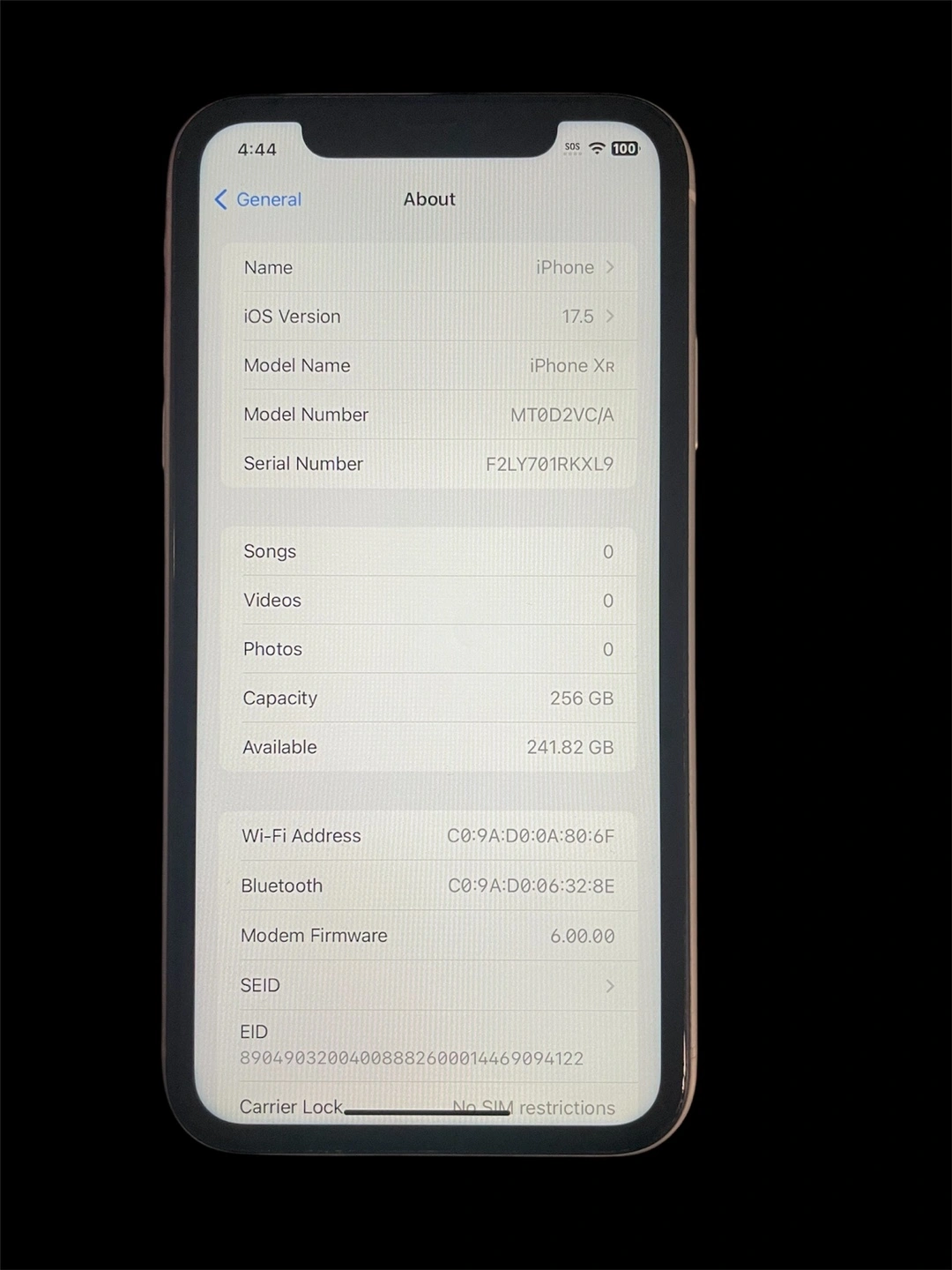 Selling my iPhone XR with 256GB storage in pristine white color. The phone is in mint condition with a battery health of 87%. It does not come with the original box or accessories, just the phone itself.