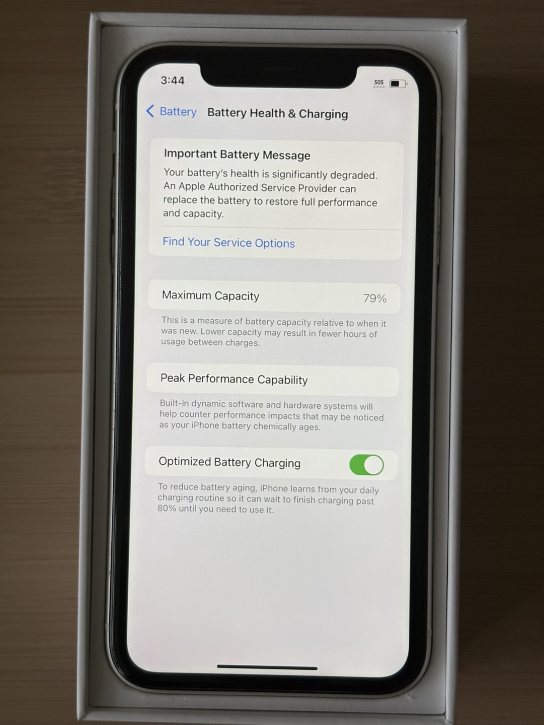 iPhone 11. Battery health is 79%. Minor scratches on screen, fully functional.