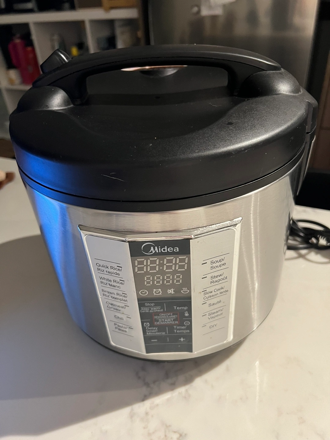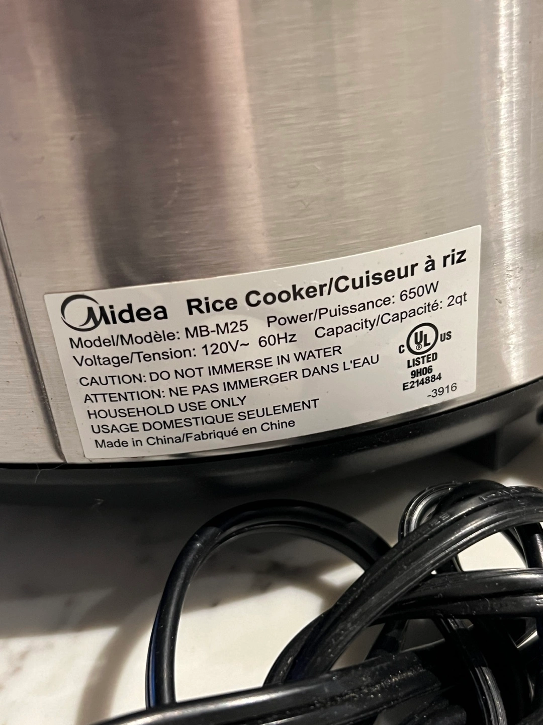 Use the Midea Rice Cooker MB-M25 to stew, steam, saute and so much more with the 12 recipe presets. Or set the preferred time and temperature with the customize-mode. Start cooking whenever is most convenient, with the 24-hour preset timer! • 12 pre-programmed functions: 12 thoughtfully selected programs for the most popular recipes • LED Digital Display: Easy-to-read LED display for keeping track of time and informed on the progress • 24 hours Preset timer: The Delay Timer up to 24h is designed for people on the go. • Accessories Included: Interior Cooking Vessel, Steaming Tray, Measuring Cup, Rice Spatula • Capacity: 5Qt • Voltage: 120V~60Hz • Power: 650W https://www.walmart.ca/en/ip/midea-digital-rice-cooker-stainless-steel/6000196173668
