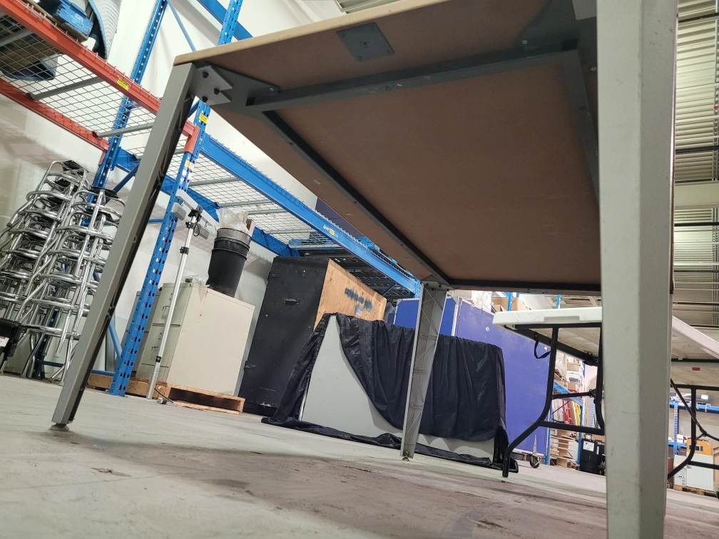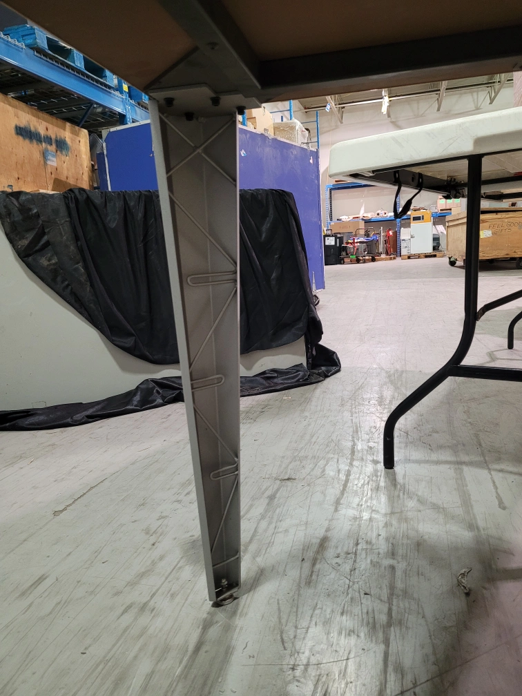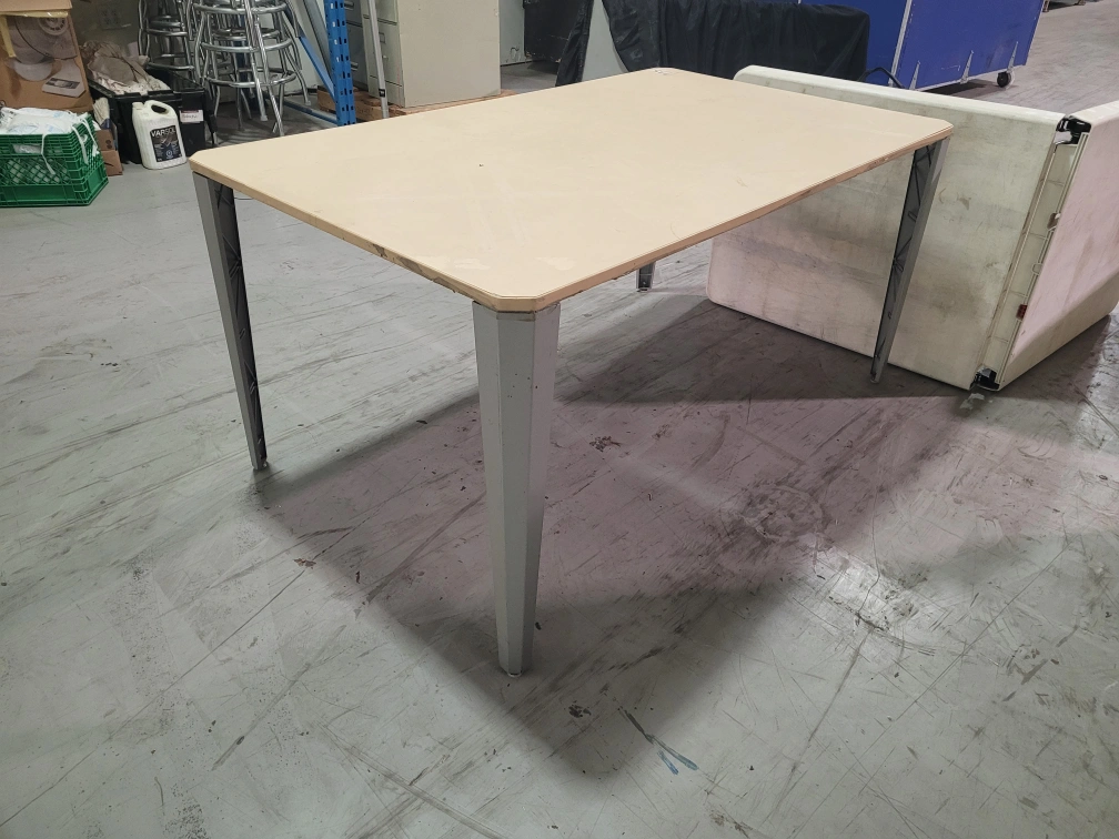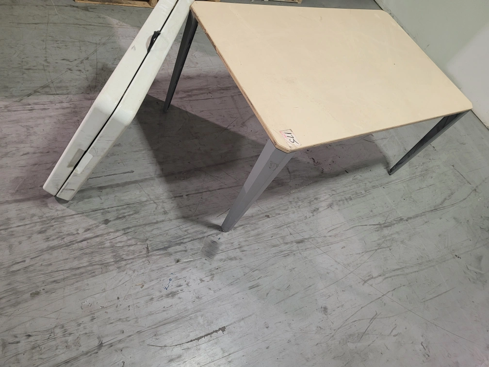 yes $5.00 take it away! NON Folding table with a beige top and grey metal legs. I dont have the tools to disassemble it. I cannot take it apart, if you want to try, you will have to do it outside, not in my storage area. 36x60 on top. 29 inches tall this is not a fold up table. folding table is gone. cash price. must pickup at 391 attwell drive during monday to friday 8am to 430pm