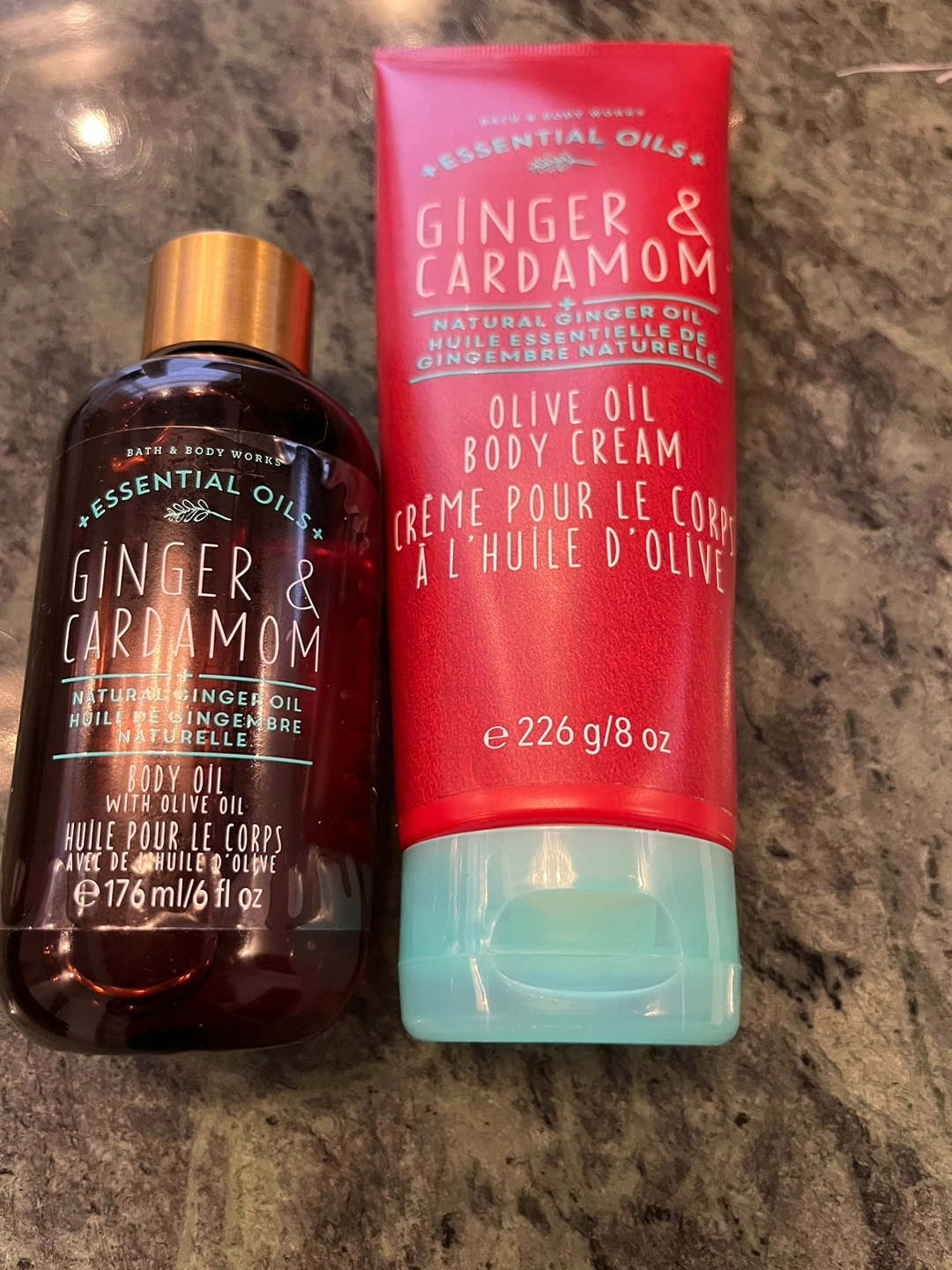 New Body cream (8oz) and Body Oil (6oz) both infused with Olive Oil.