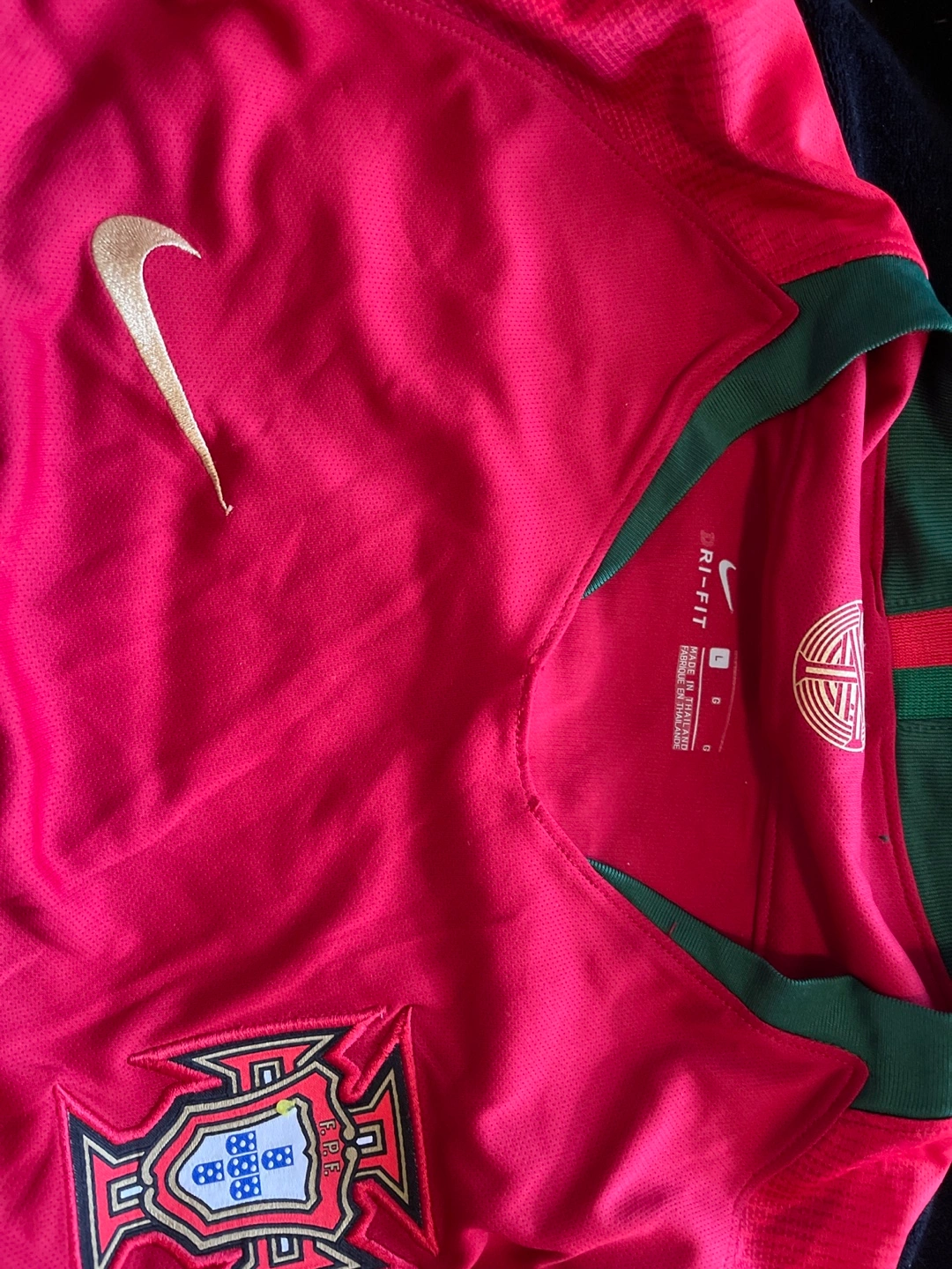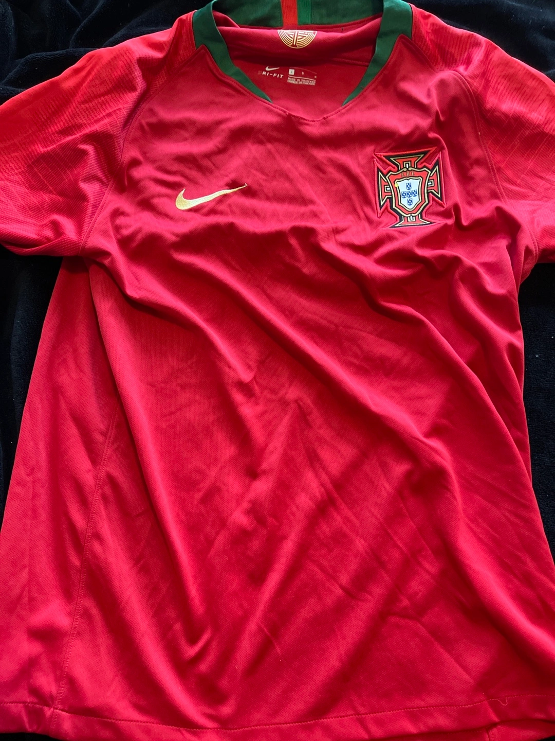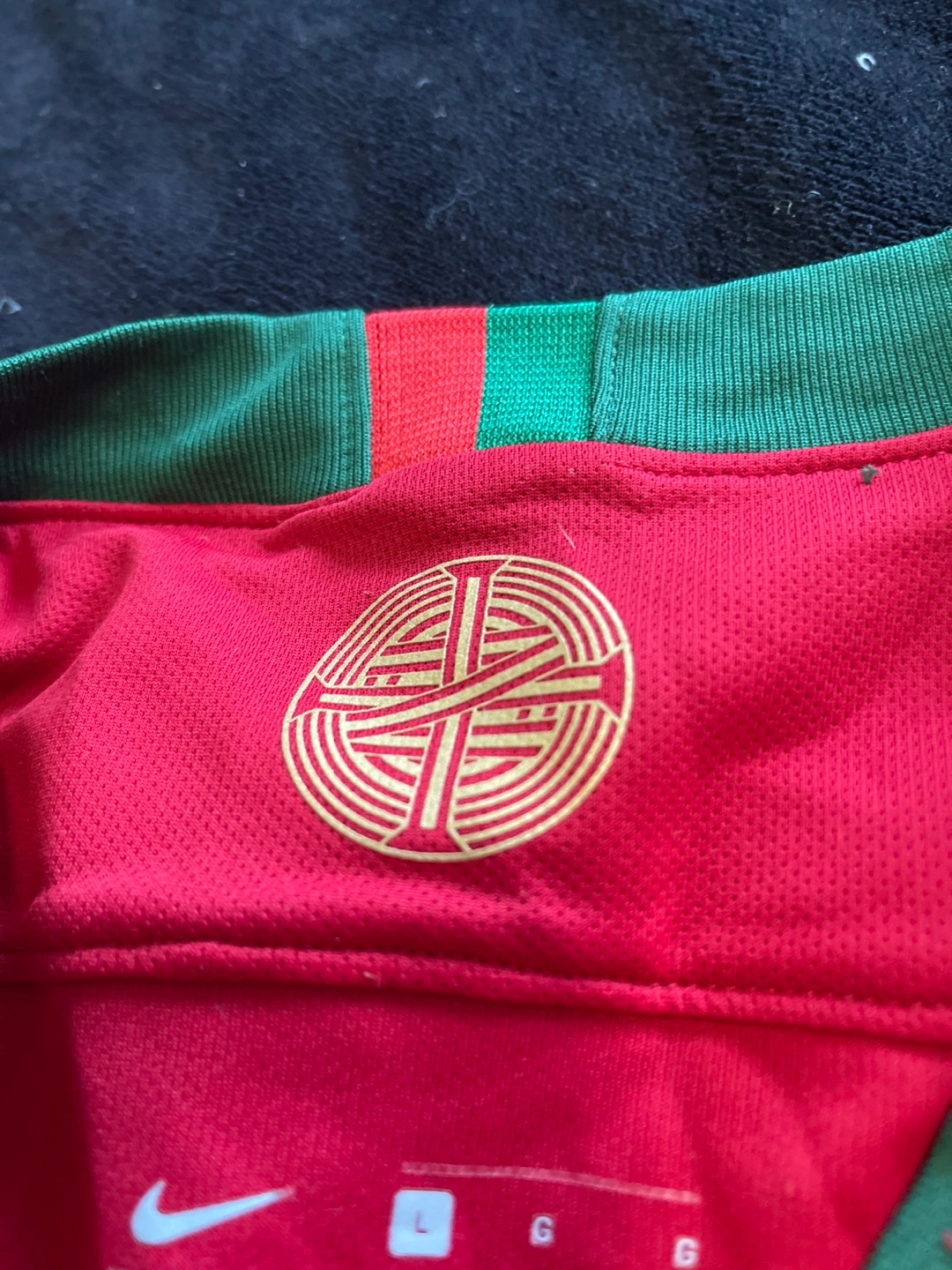 Nike Portugal home jersey, size large, from the 2018 World Cup. Authentic, with the Nike Swoosh logo.