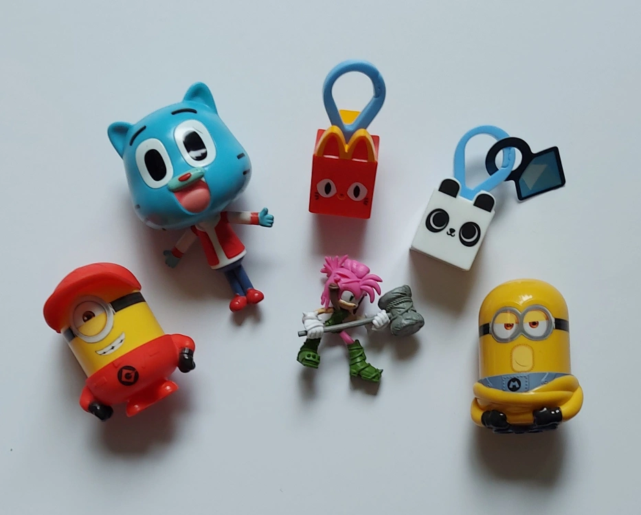 Set of 6 toys. Includes Gumball, Minions, and a Panda. All toys are in good condition.
