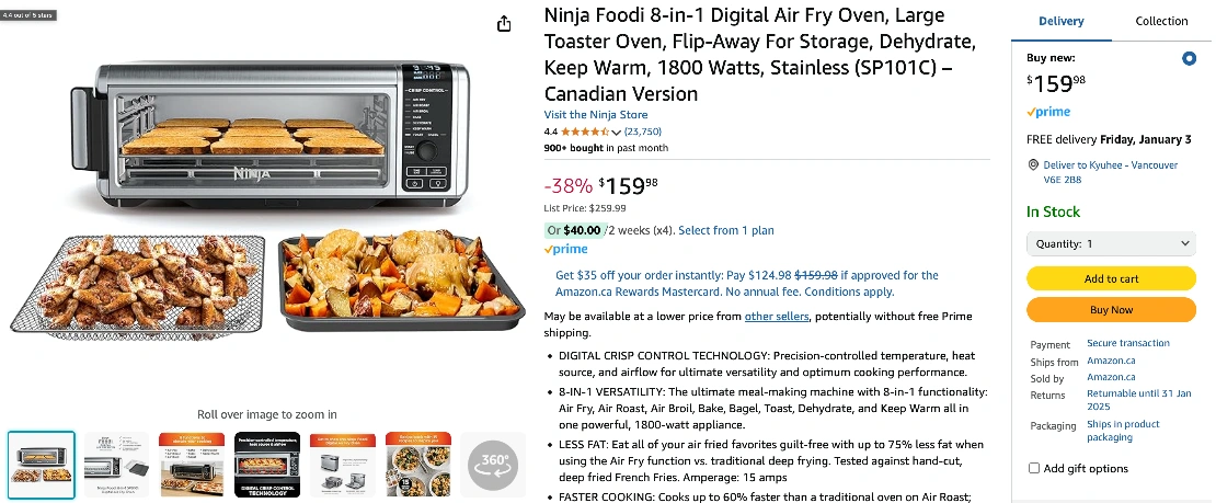 Digital Air Fry Oven, Large Toaster Oven, Flip-Away for Storage, Dehydrate, Keep Warm, 1800 Watts, Stainless, Canadian Version