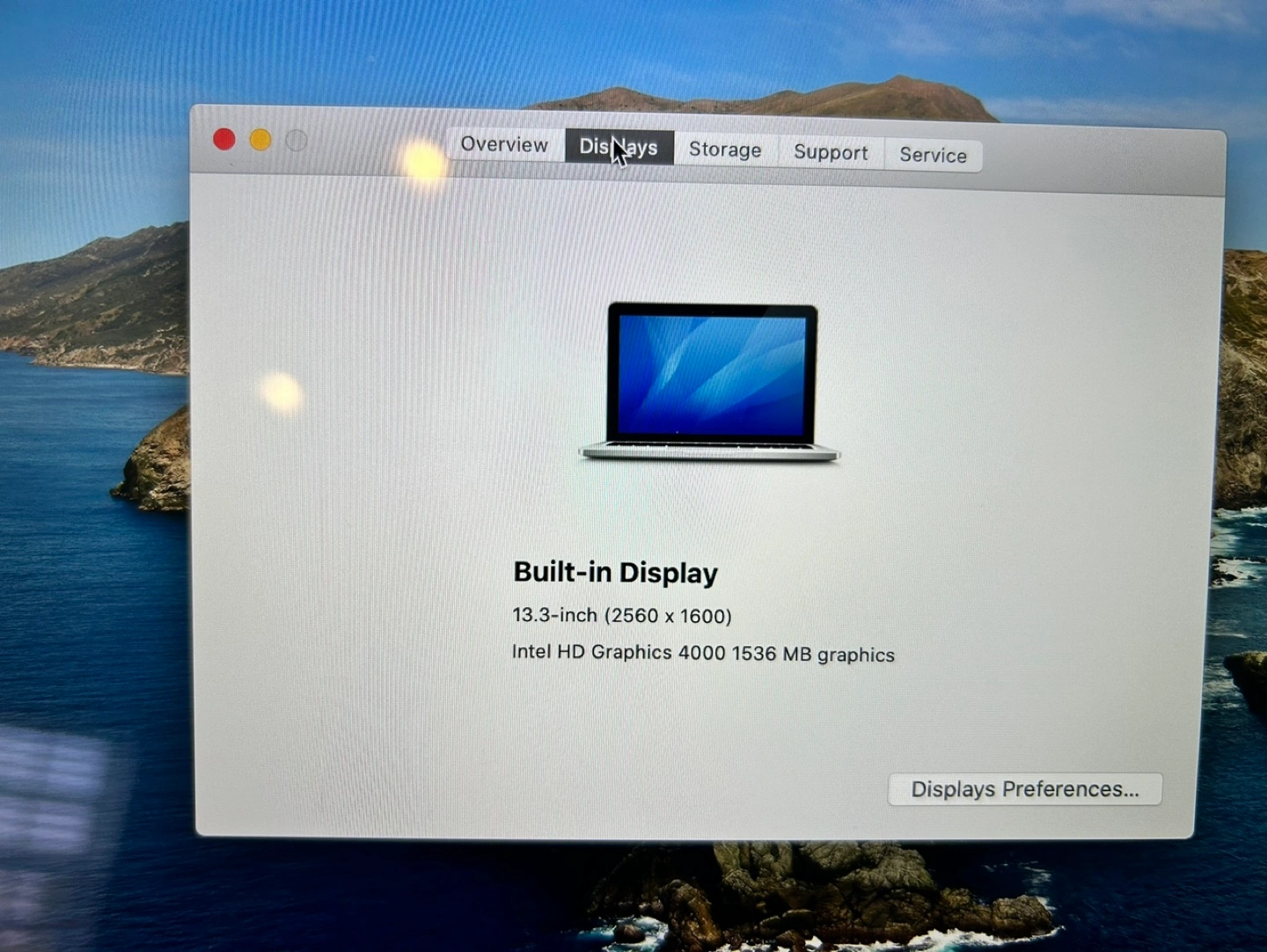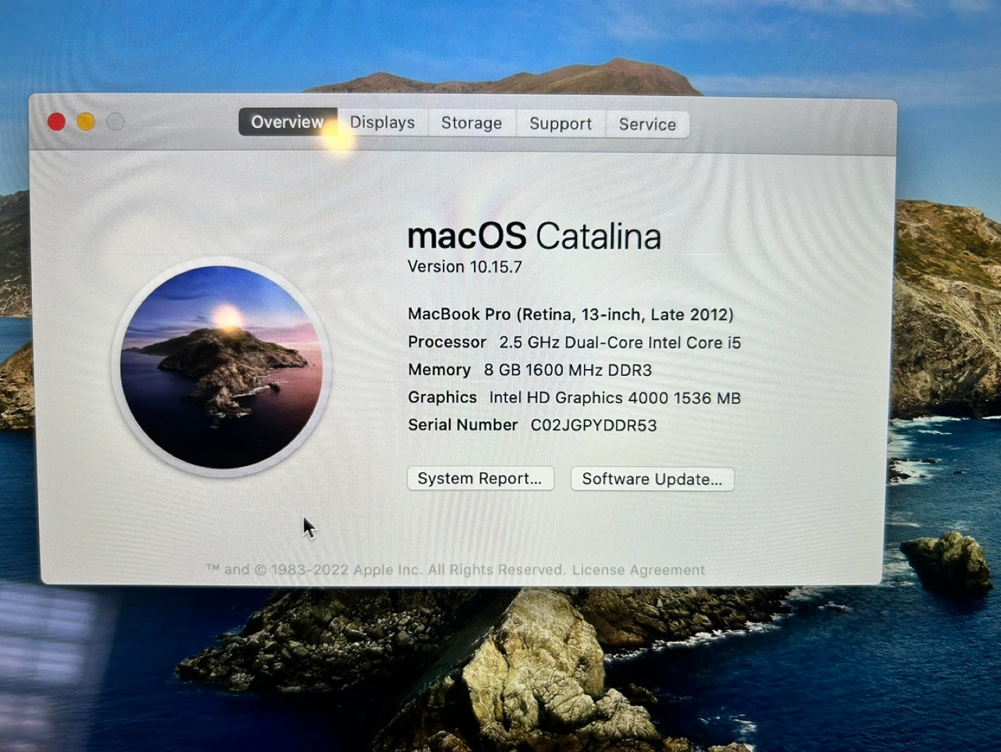 35MacBook Pro with 2.5 GHz Dual-Core Intel Core i5 processor, 8 GB 1600 MHz DDR3 memory, Intel HD Graphics 4000 1536 MB graphics. Running macOS Catalina. MacBook Pro 13” (Late 2012) Brand new battery (check out pictures) Retina display 8GB ram 120GB ssd UK keyboard Non OEM charger Built in wifi not working, including nano USB wifi Fresh install of Catalina (you can use OCLP or even install Linux)Show less
