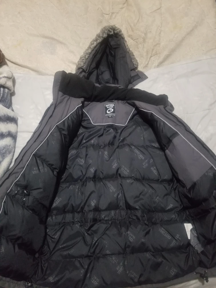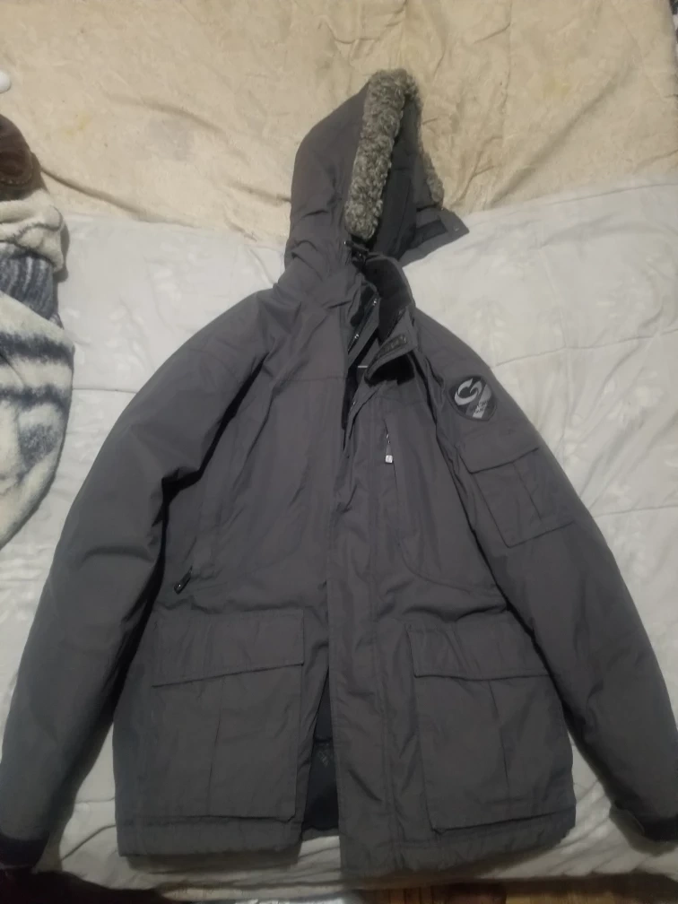 Grey winter jacket with a hood. Has multiple pockets. Size Small ๐ค Asking $15 Proceeds will be donated to Sickkids hospital and to give back to the homeless community โบ๏ธ Need Gone ASAP Thanks for Looking ๐