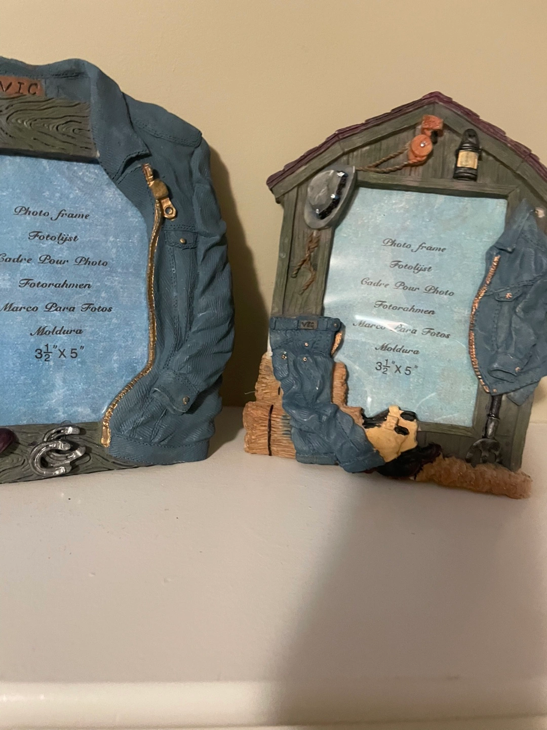 137Two decorative picture frames with a rustic design. Both frames have a picture size of 3 1/2” x 5”.