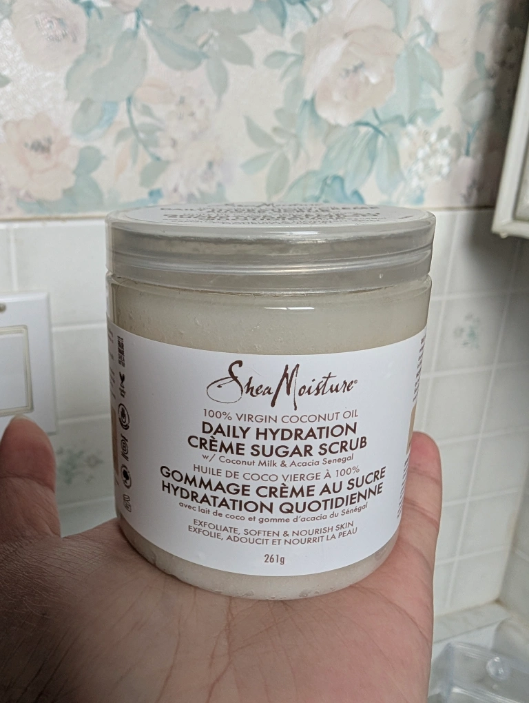 I'm selling a Shea Moisture 100% Virgin Coconut Oil Daily Hydration Crème Sugar Scrub. It's a gommage crème au sucre hydration quotidienne with coconut milk and acacia senegal. Exfoliate, soften and nourish skin