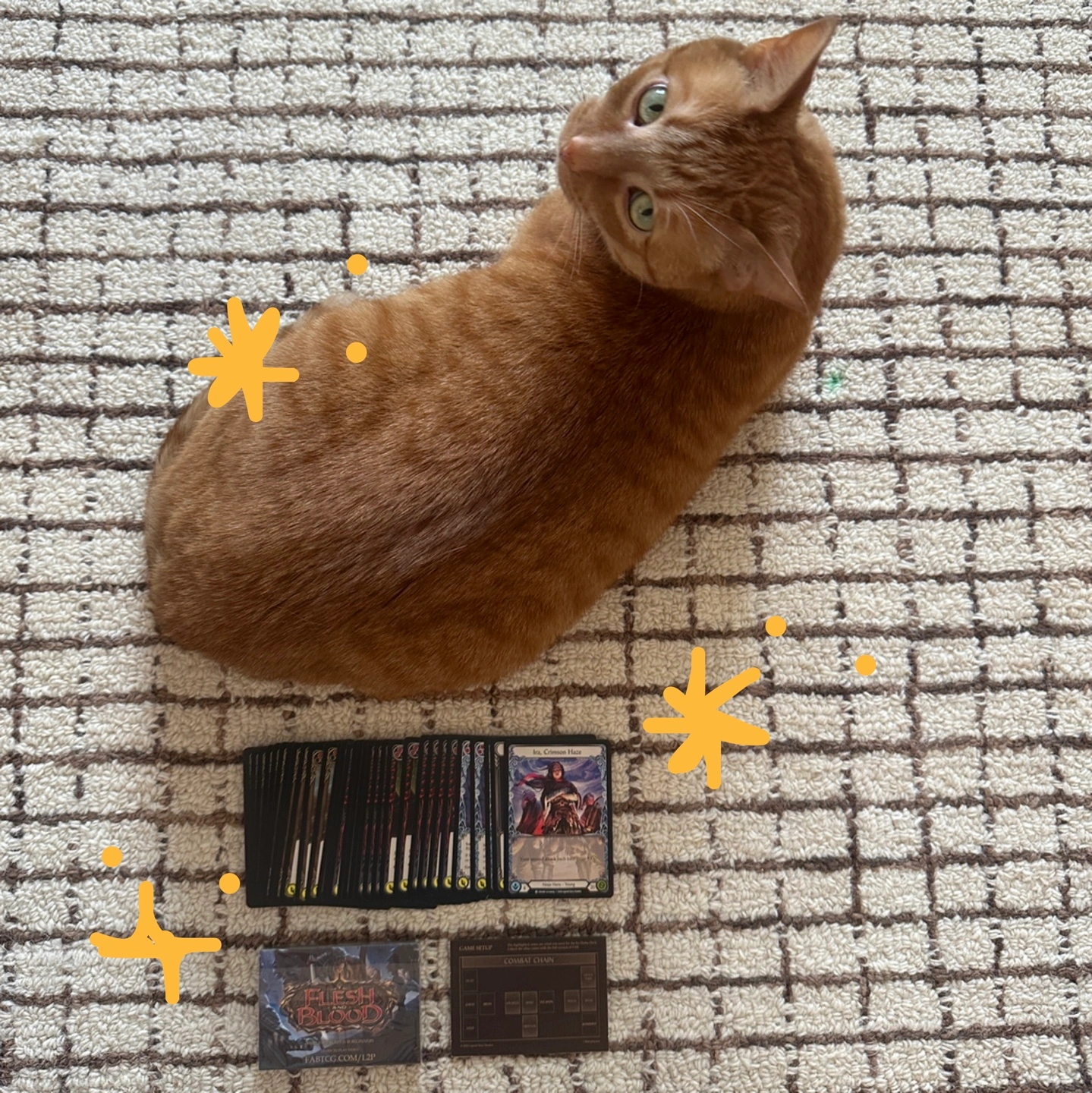 Game: Flesh and Blood. Free little starter kit with two decks — games stores give these away with purchases so you can try it out! I am already invested in one TCG and simply cannot add another. ✨