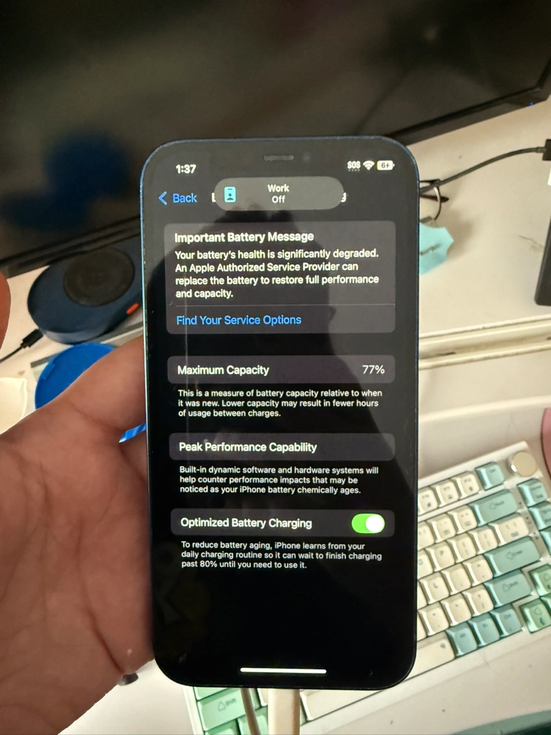 77% battery health but aside from that the phone is in great condition with only some minor surface scratches on the screen. Whether you want it for parts or for yourself it’s a great phone. I’m only selling bc I upgraded.