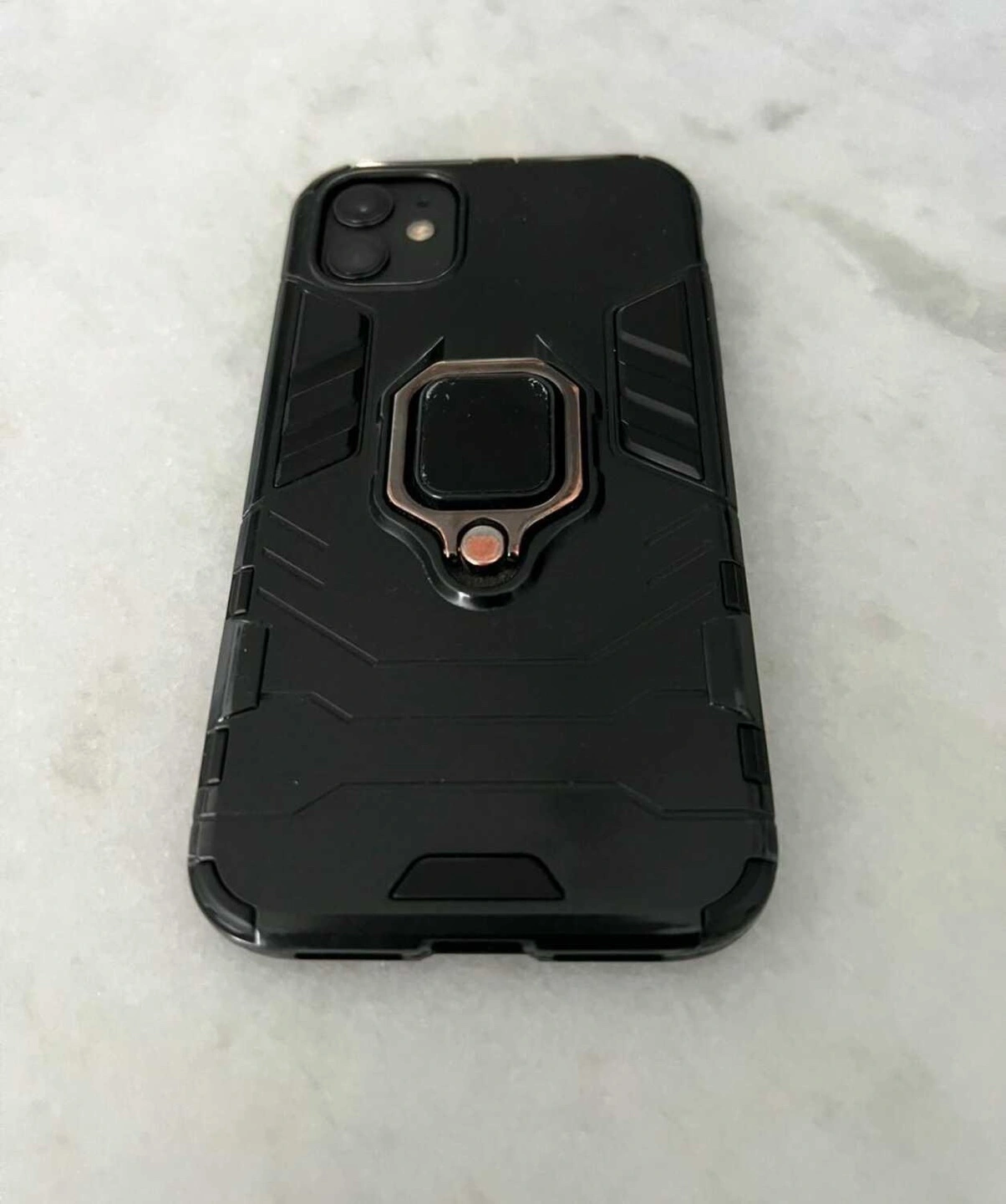 Includes original box and a black phone case with a ring holder.
