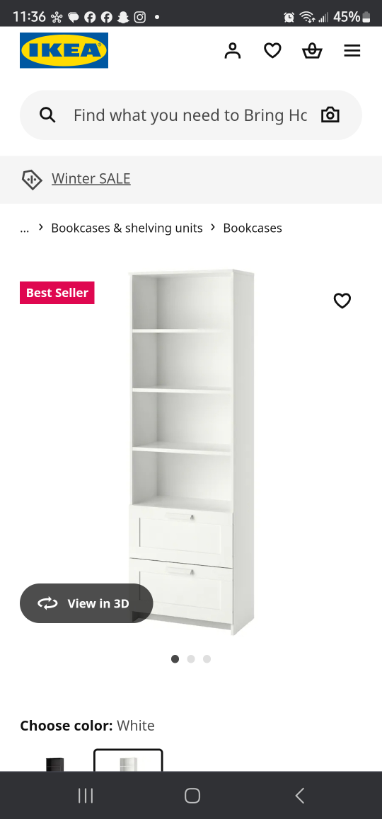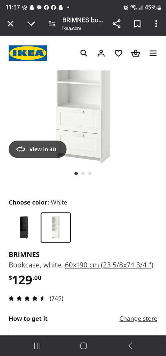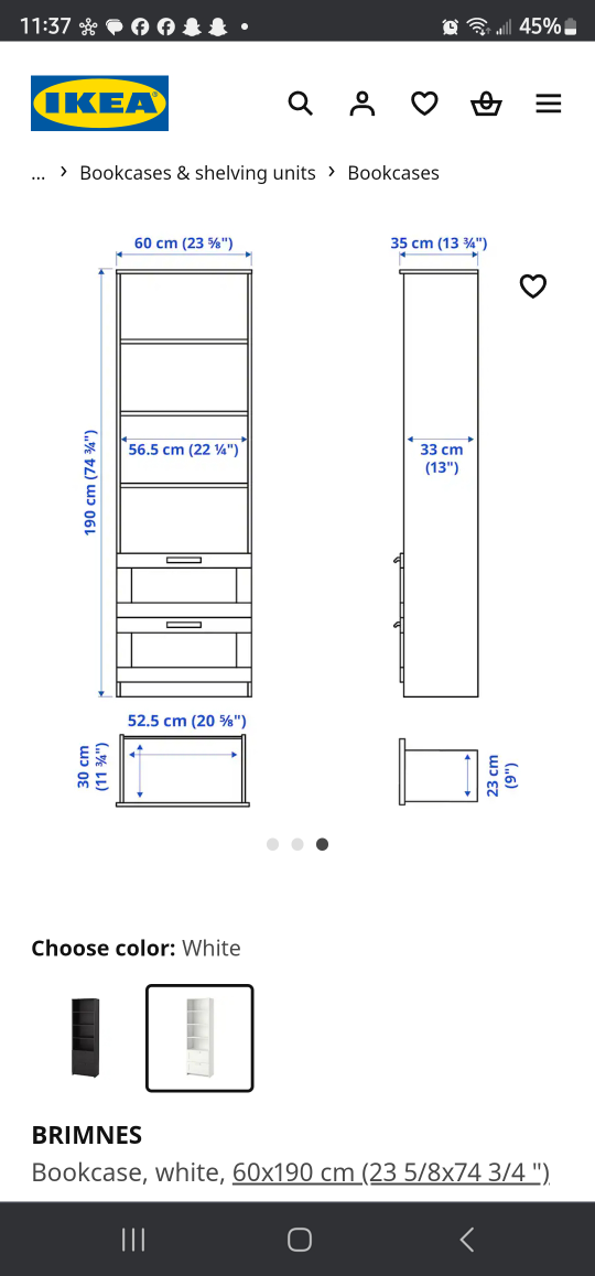 1 / 71 / 7Buy & SellIKEA BRIMNES Bookcase - WhiteIKEA BRIMNES Bookcase - White$70Tall bookcase with 4 shelves and 2 drawers. White. Good condition. $70 Each $120 for Both (set of 2) Pick Up onlyConditionGoodWHERE TO MEET14th Street & 6th AvenueView MapSELLERverifiedmayGilmore Station20914 reviews12 chats·5 favorites·210 viewsSEND CHAT TO SELLERHi may! I’m interested in your listing.Hi may! I’m interested in your listing.Get the Karrot app to chatSign In to chat