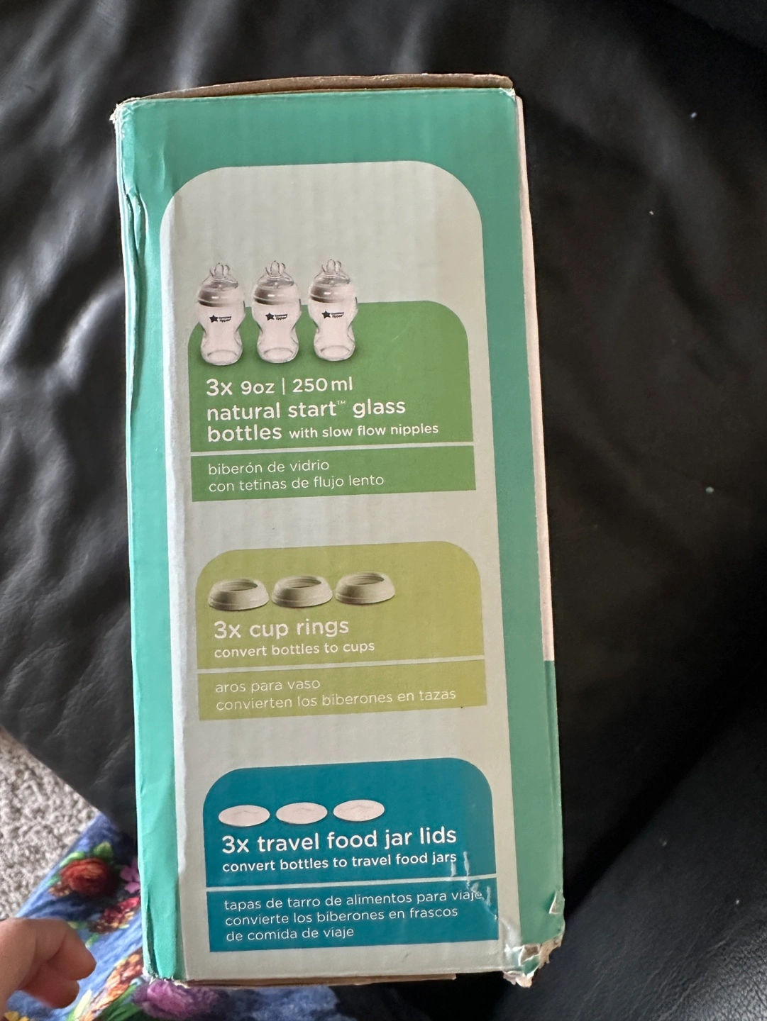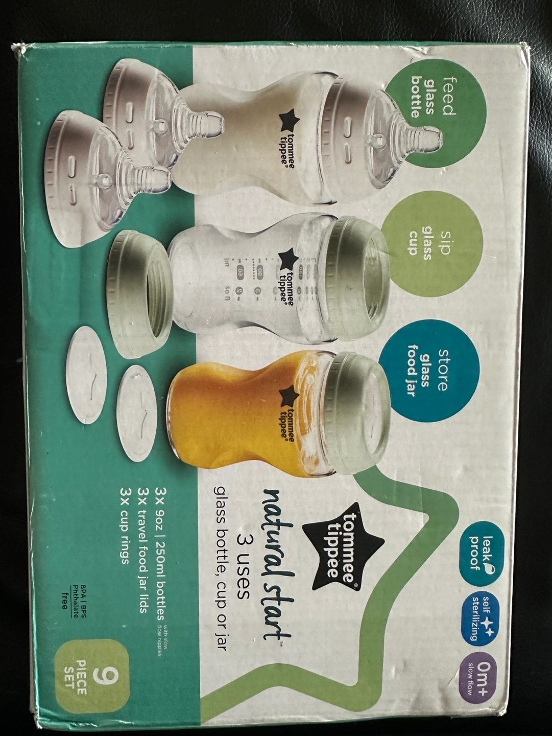 15Set of three 9oz glass bottles, 3 cup rings and 3 travel food jar lids