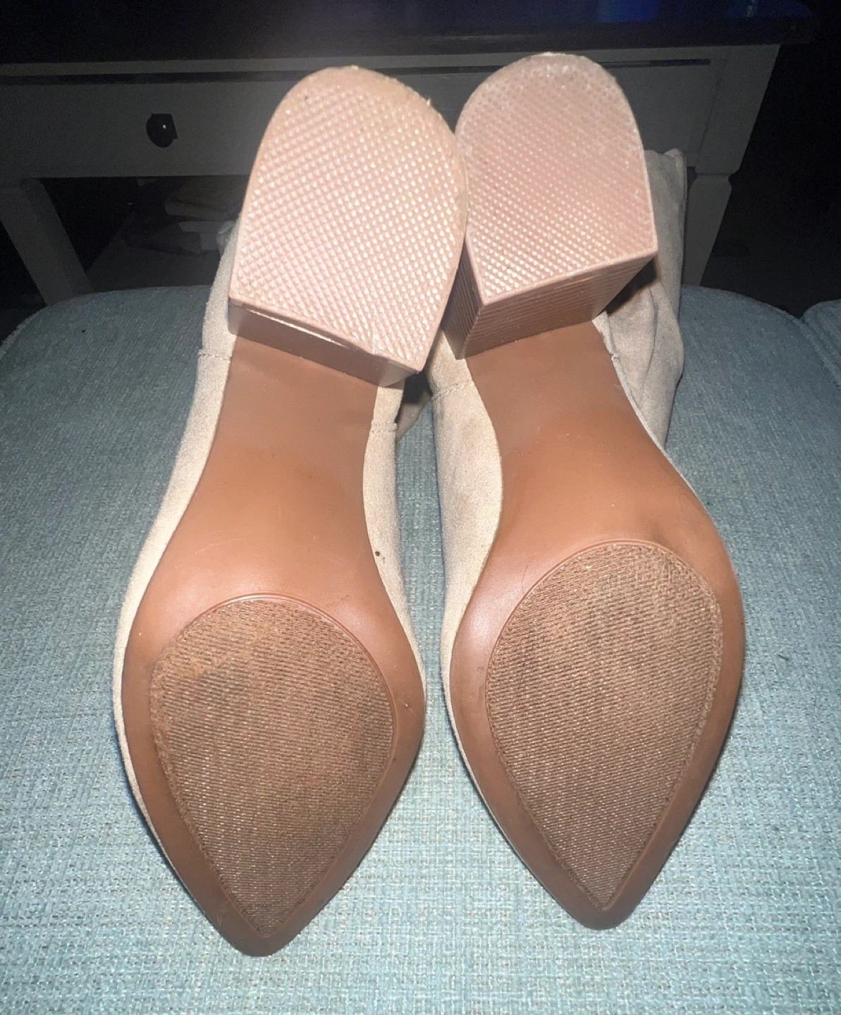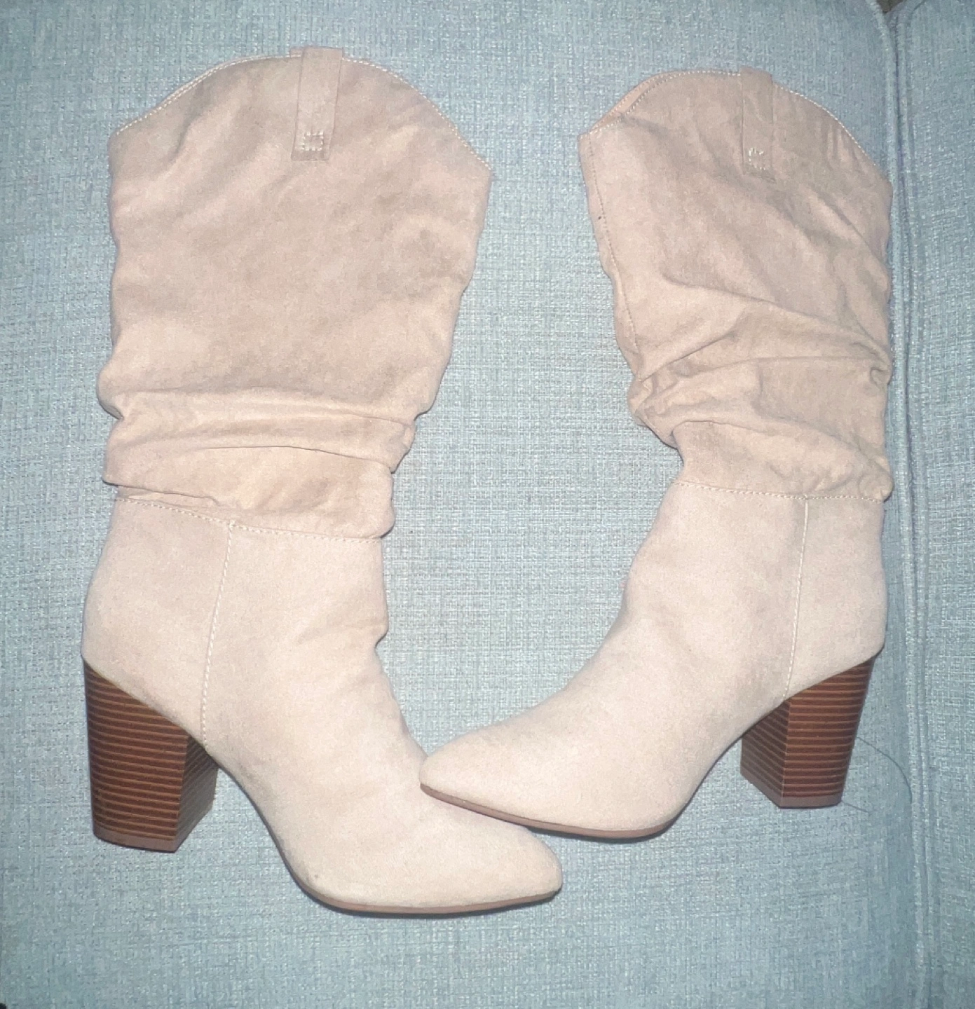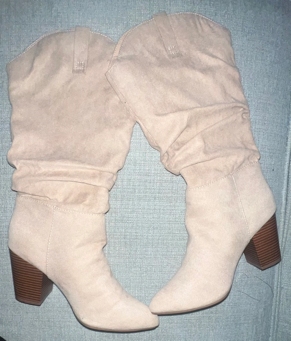 Women's size 7 slouchy suede boots with brown heels. Heels high 4” Made in China. Cash only. No returns accepted. Thank you. Happy new year 🎉