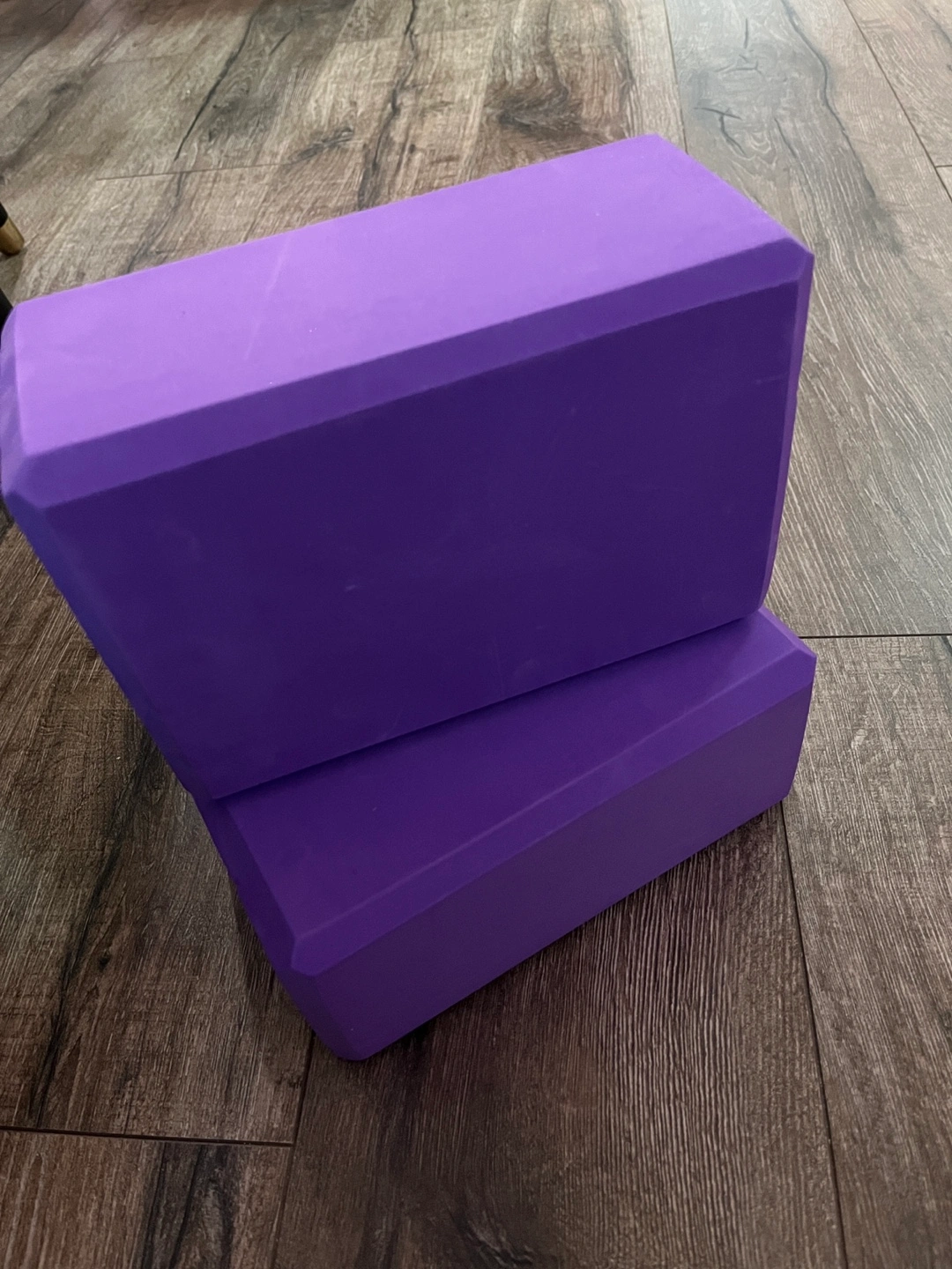 258Two purple yoga blocks. Great for stretching and improving flexibility.