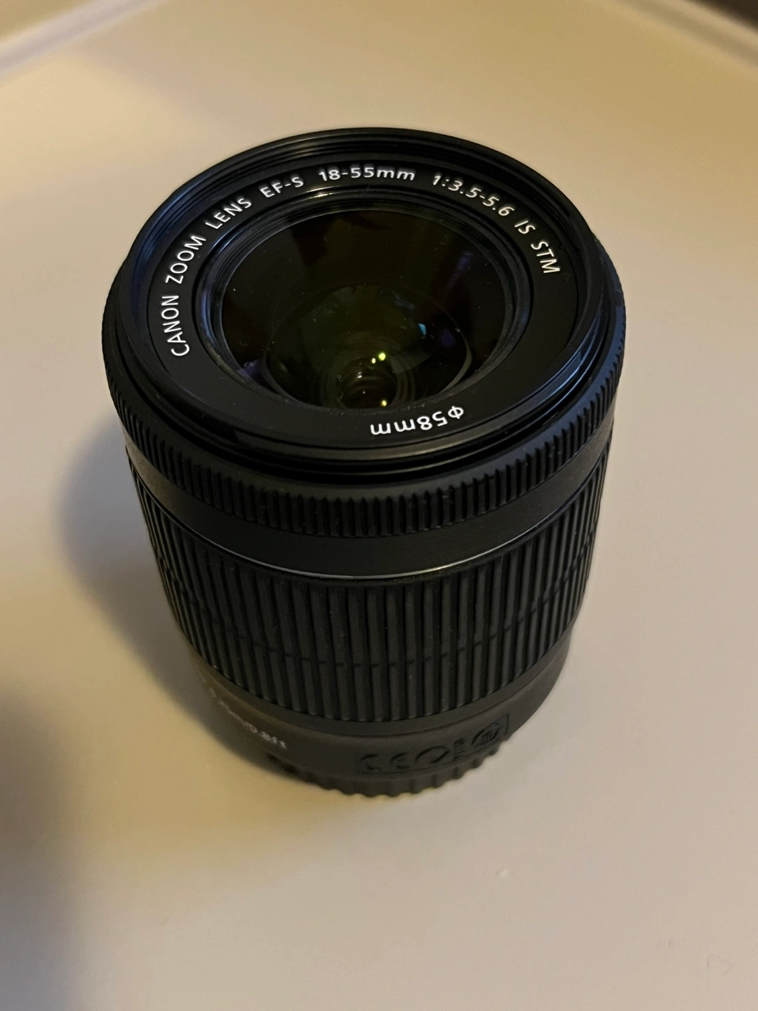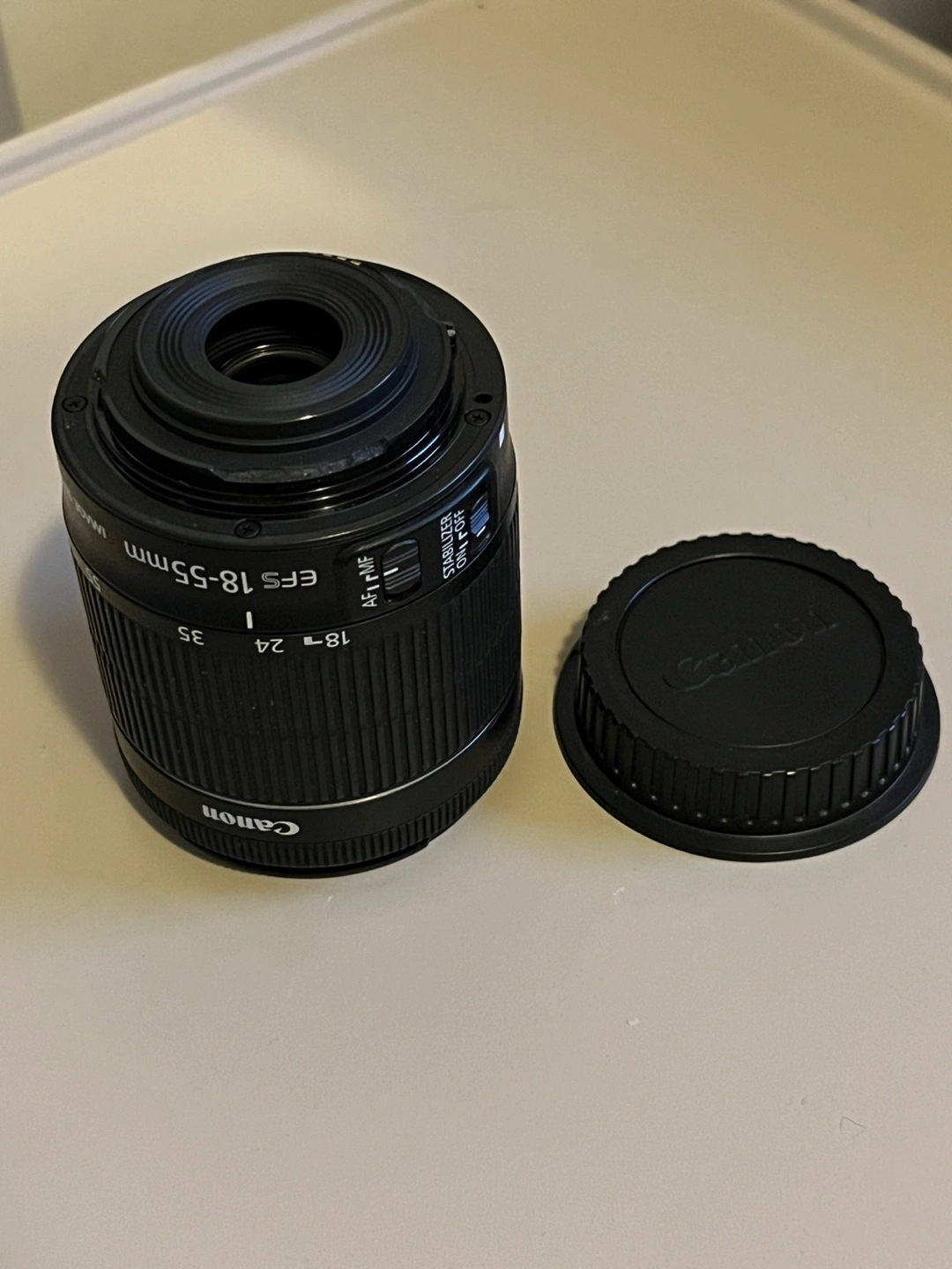 Canon EFS 18-55mm f/3.5-5.6 IS STM lens. Includes rear len cap only.