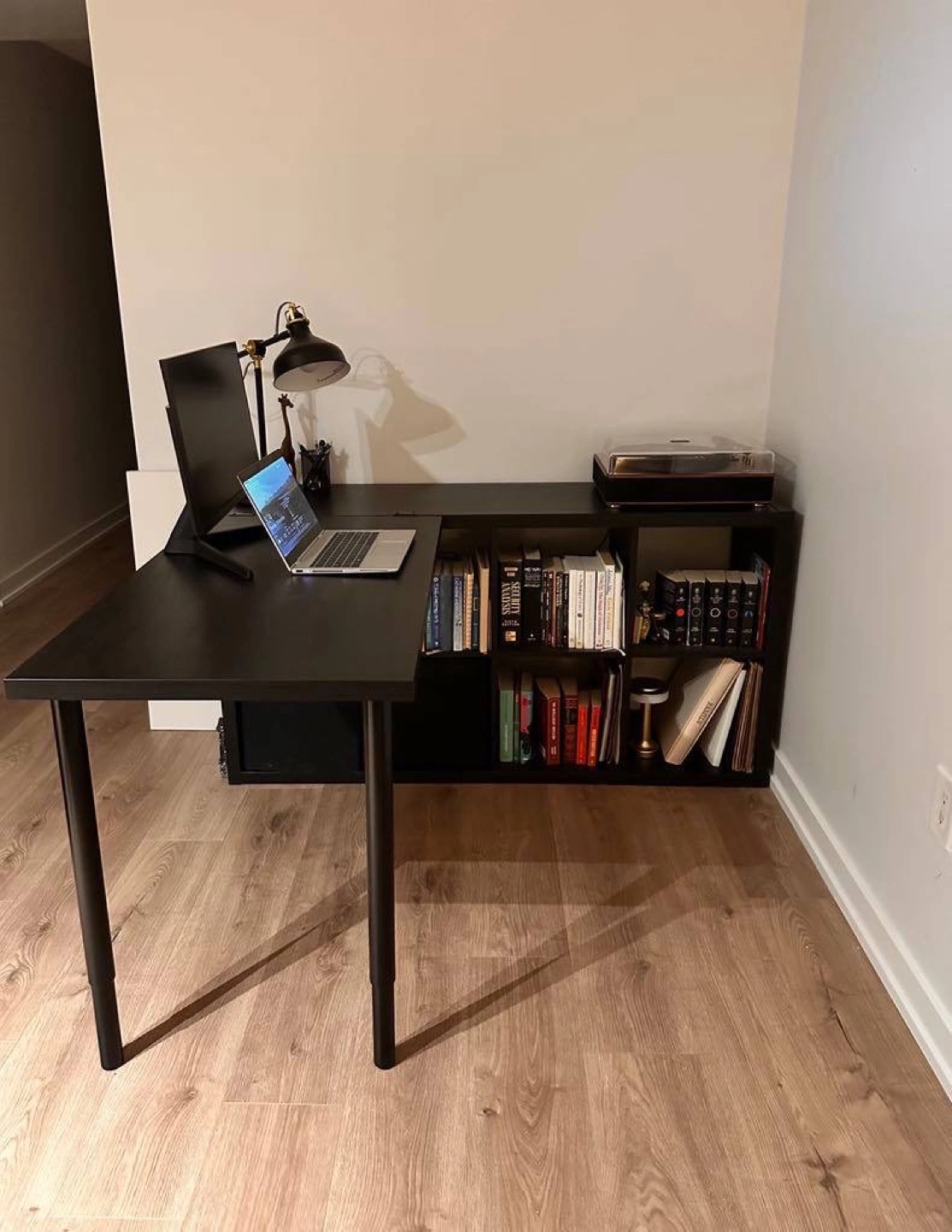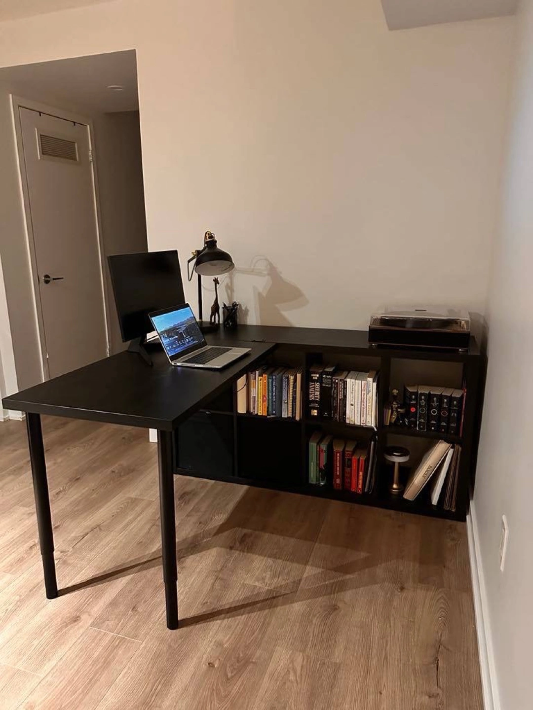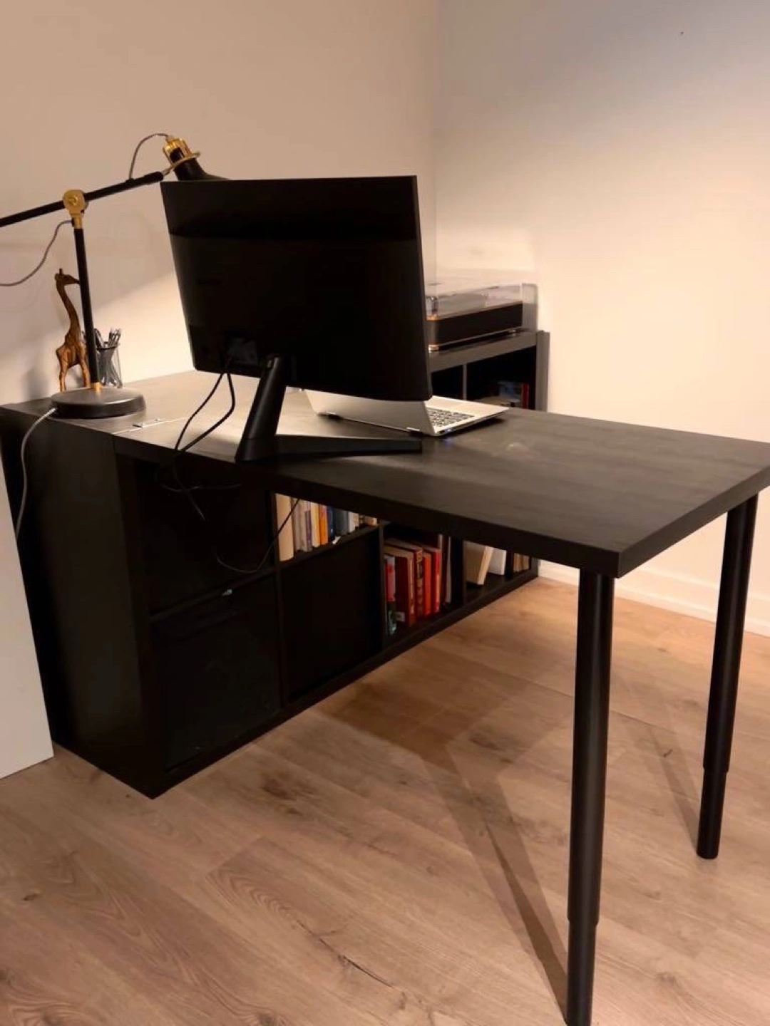 14Versatile KALLAX/LAGKAPTEN combination featuring a spacious desk and functional shelving unit. Perfect for organizing books, decor, or supplies while offering a practical workspace. Can be placed vertically or horizontally. Shelf Unit: 77 cm x 147 cm; Desk: 140 cm x 75 cm.
