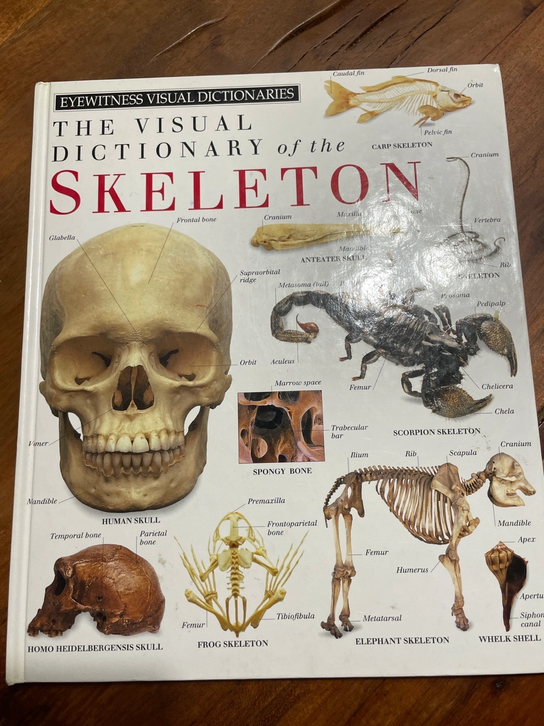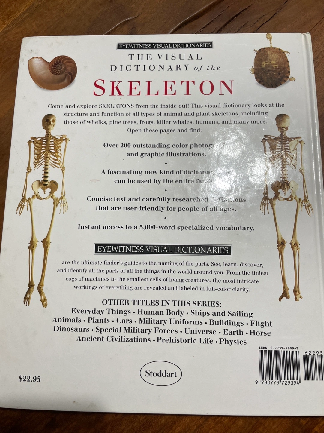 513Book exploring the skeletons of various creatures. Featuring illustrations and descriptions of skeletal structures. Includes human, animal,plant and insect skeletons.