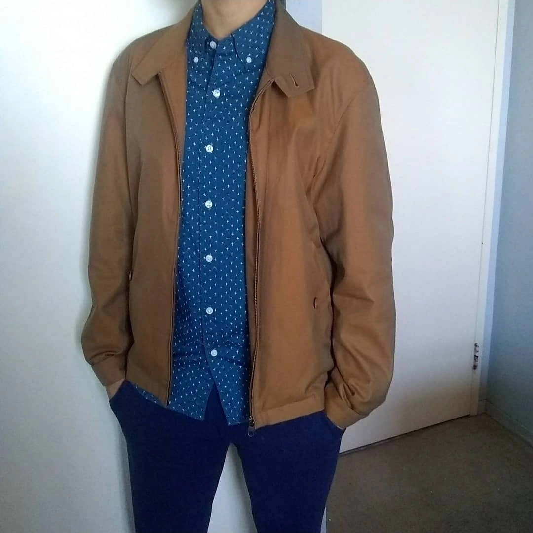 Men's brown jacket, size medium. Zip up, with two front pockets.