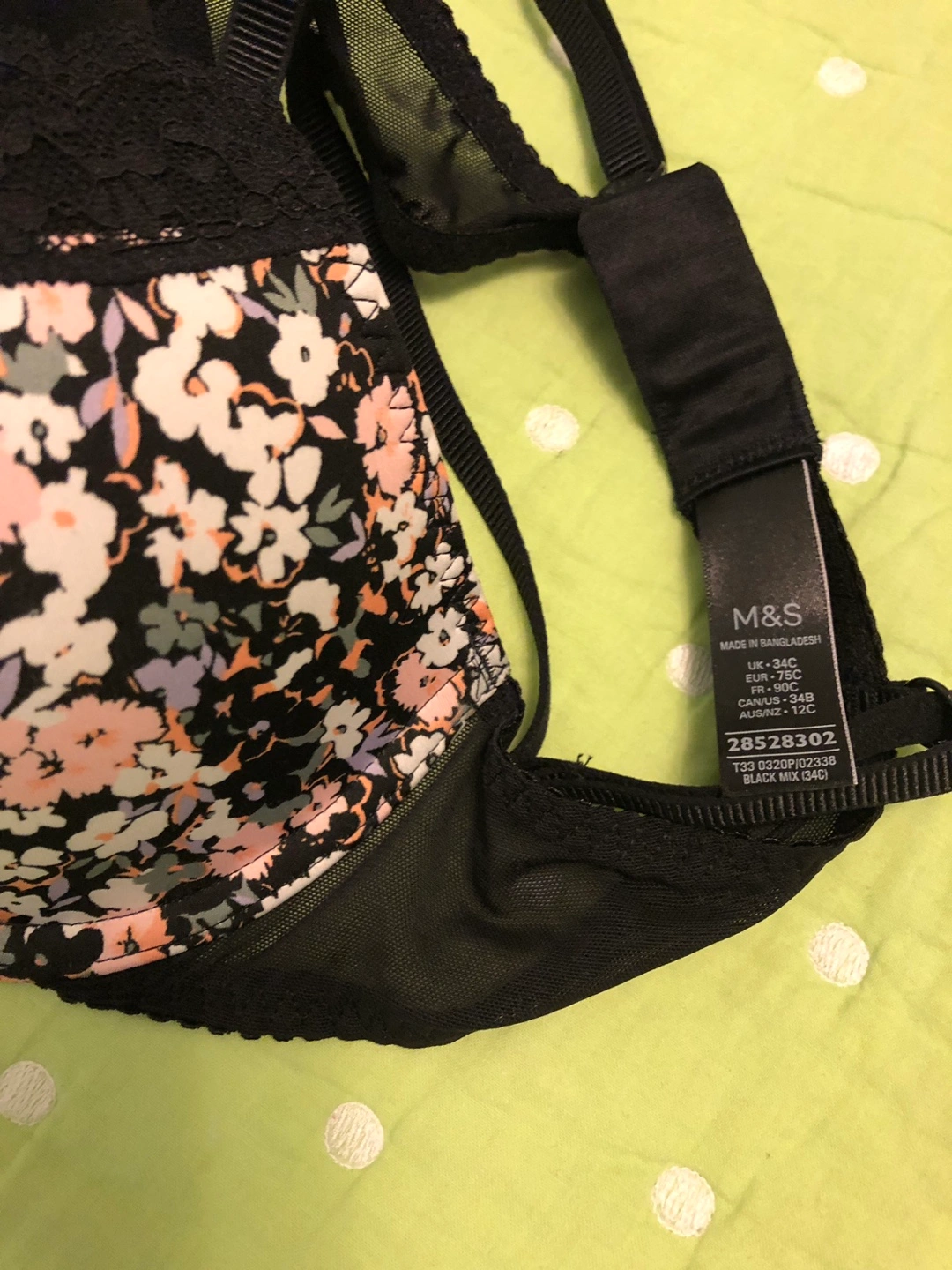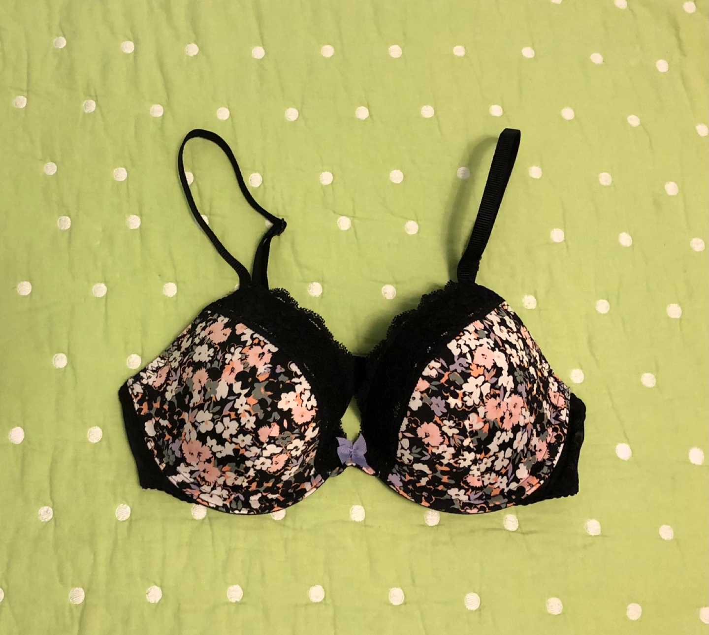 A brand new Floral print bra with black lace detailing. Adjustable straps and hook and eye closure. You may pick it up from Christie station after 4:30 pm during the week days 😊