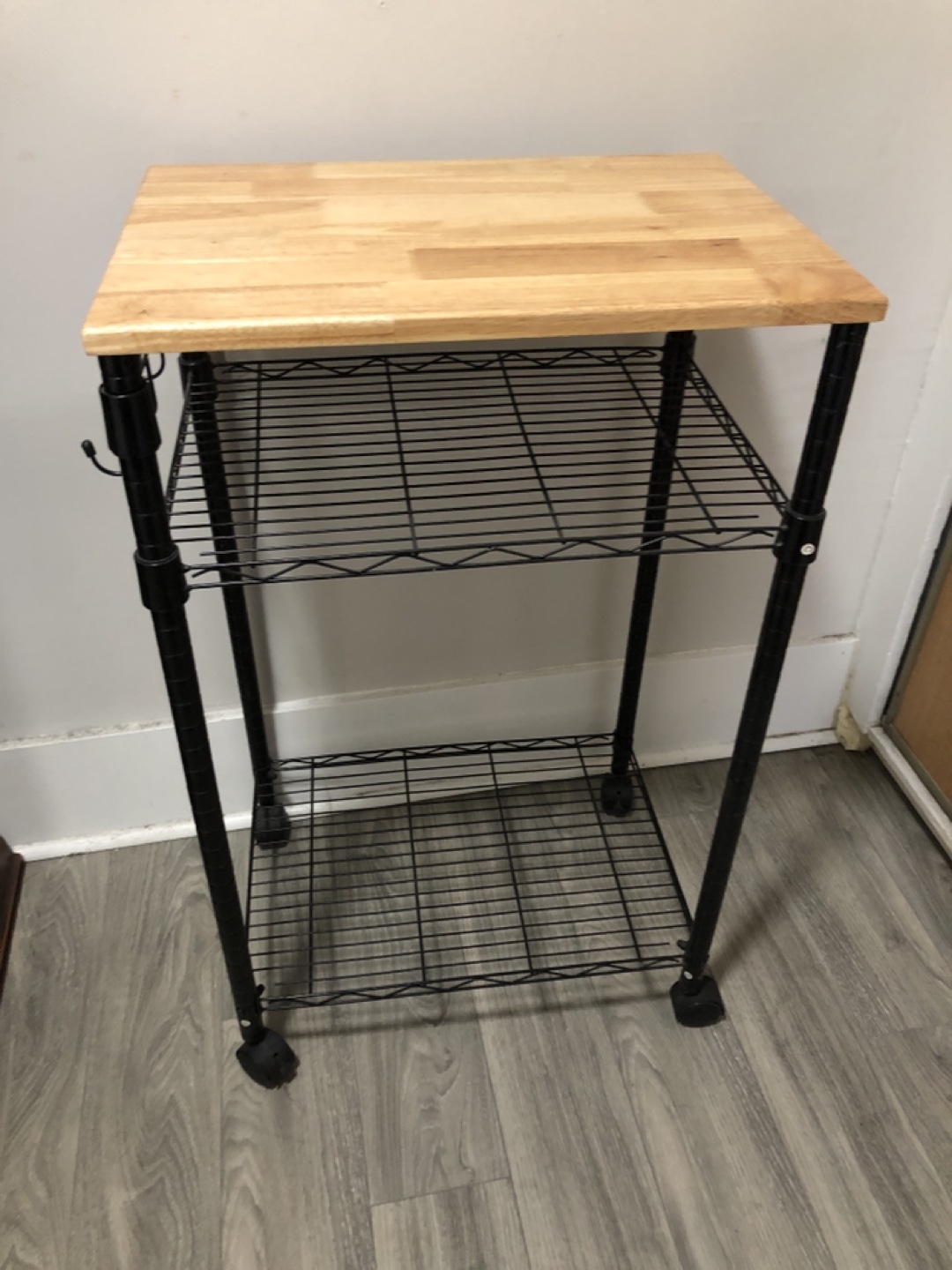 1 / 51 / 5Buy & SellBlack Rolling Cart with Wood TopBlack Rolling Cart with Wood Top$50Black rolling cart with two wire shelves and a wood top. Has four wheels. Great for storage or as a side table.ConditionGoodWHERE TO MEET432 Jarvis stView MapSELLERverifiedAllyChurch and Wellesley31622 reviews2 chats·17 favorites·379 viewsSEND CHAT TO SELLERHi Ally! I’m interested in your listing.Hi Ally! I’m interested in your listing.Get the Karrot app to chatSign In to chat