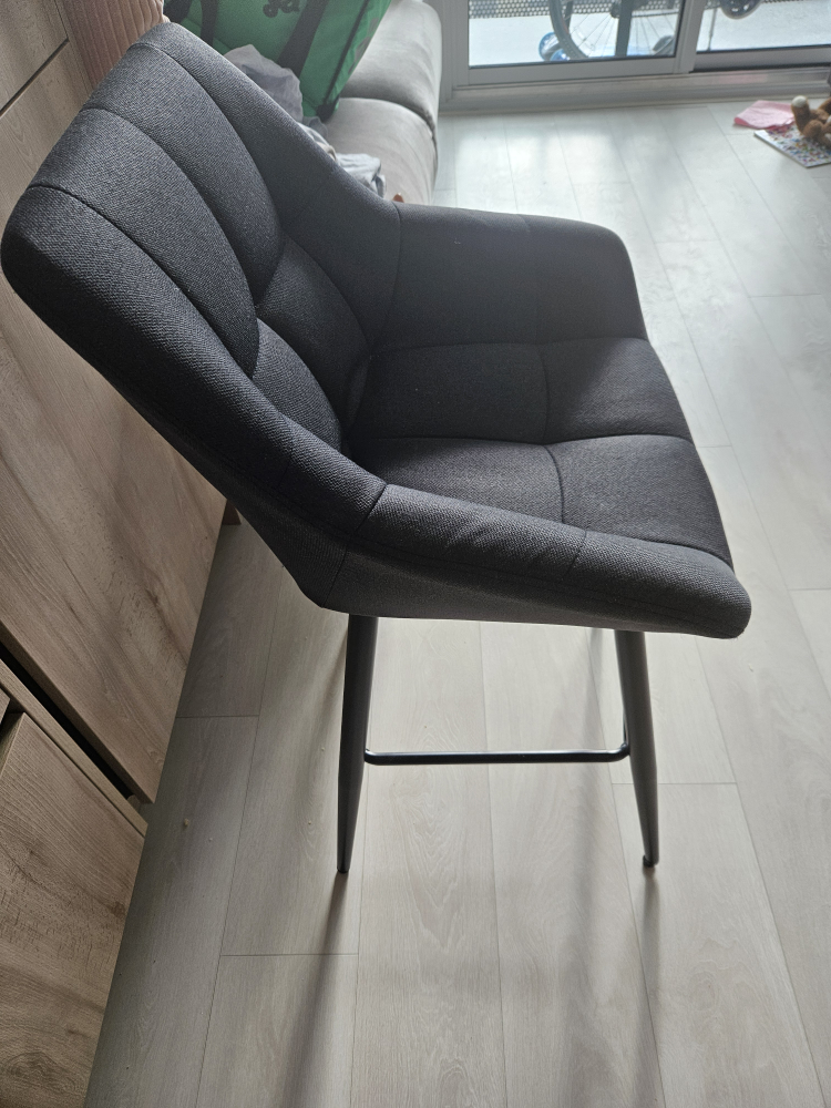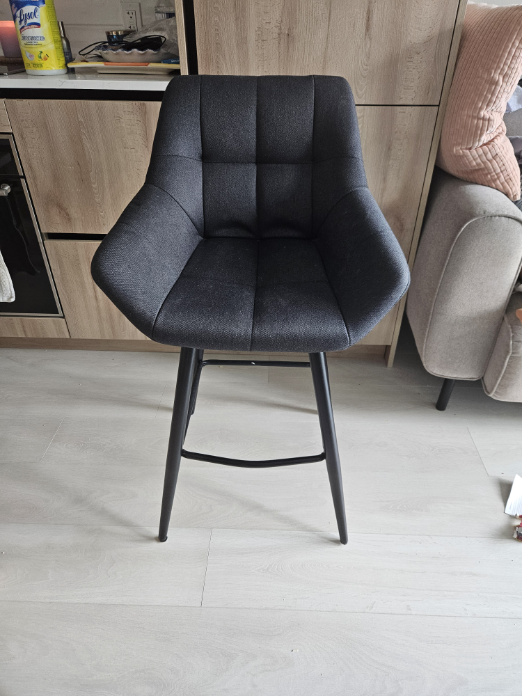 Four modern charcoal counter stools with padded seats and sturdy black metal legs, gently used for one year and in excellent condition. Originally purchased from Structube, where new ones currently sell for $100 each. Selling as a set, price is negotiable. Photos included—don’t miss out on this stylish and functional addition to your home!