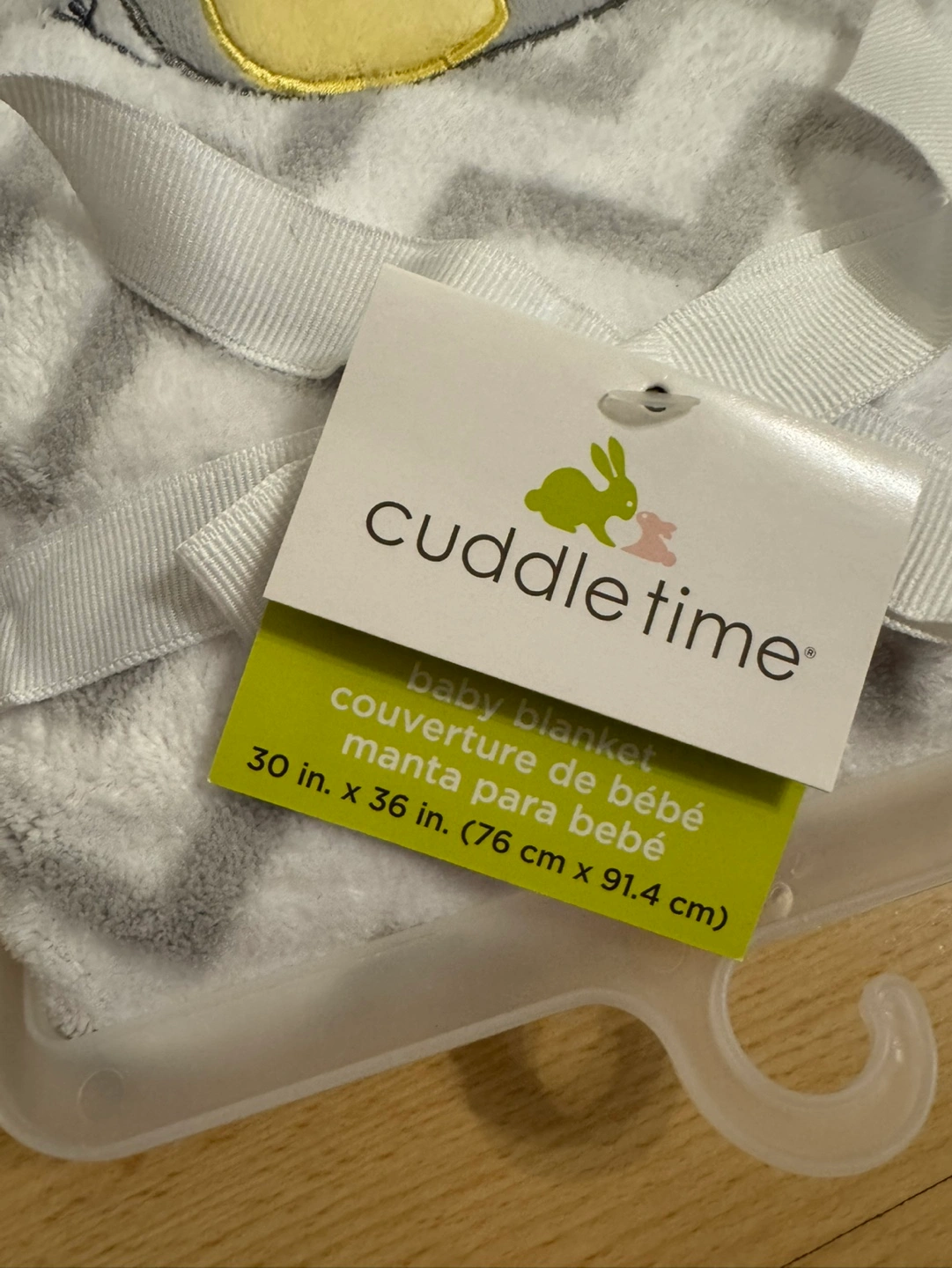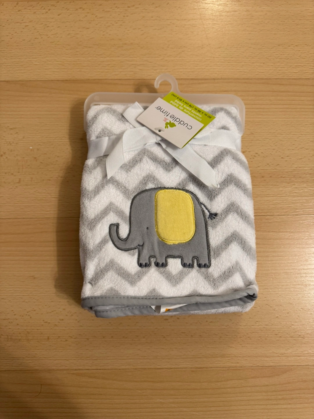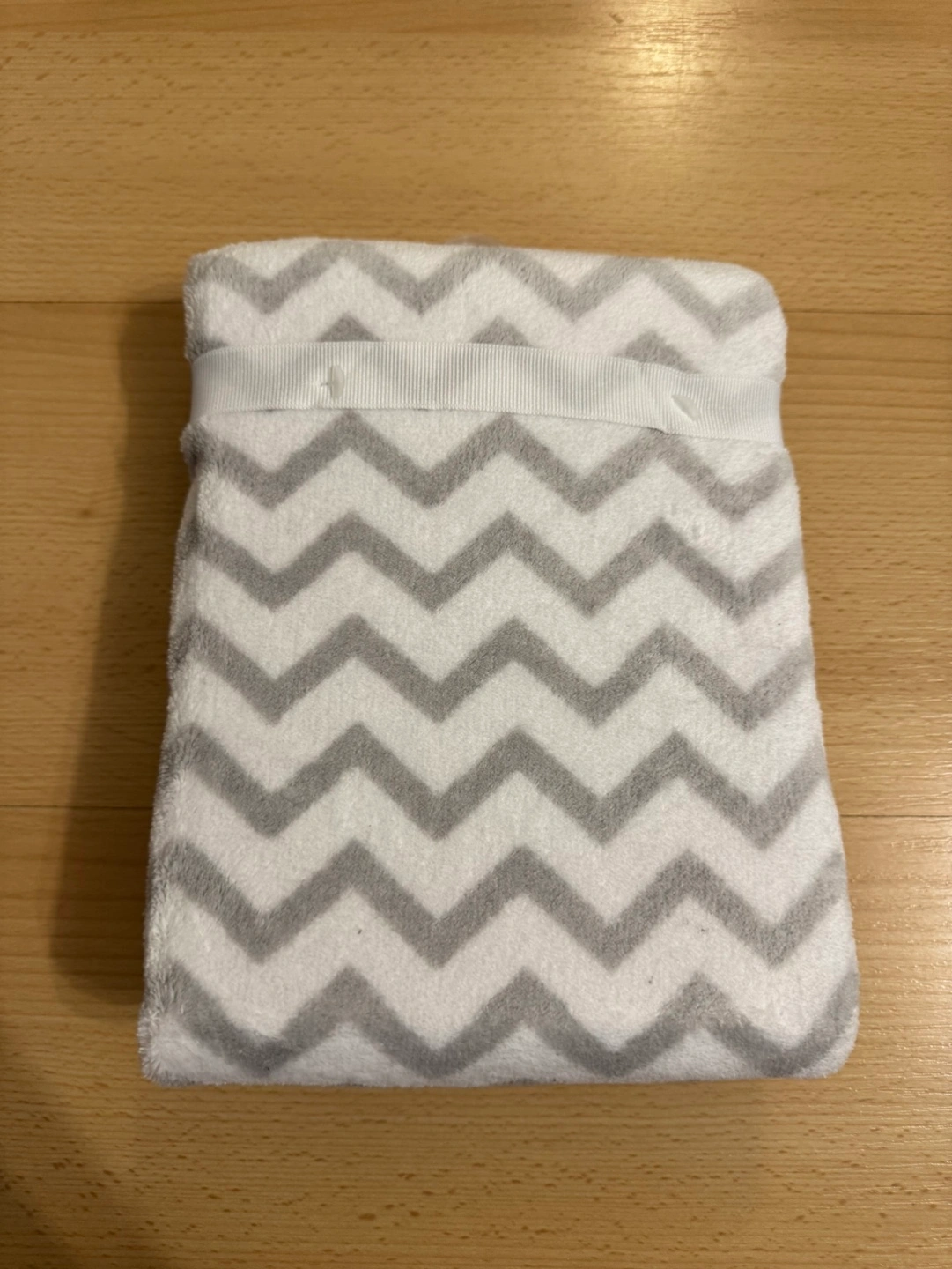 Grey and white chevron baby blanket with an embroidered grey elephant. Soft and cuddly. Brand new, never used.