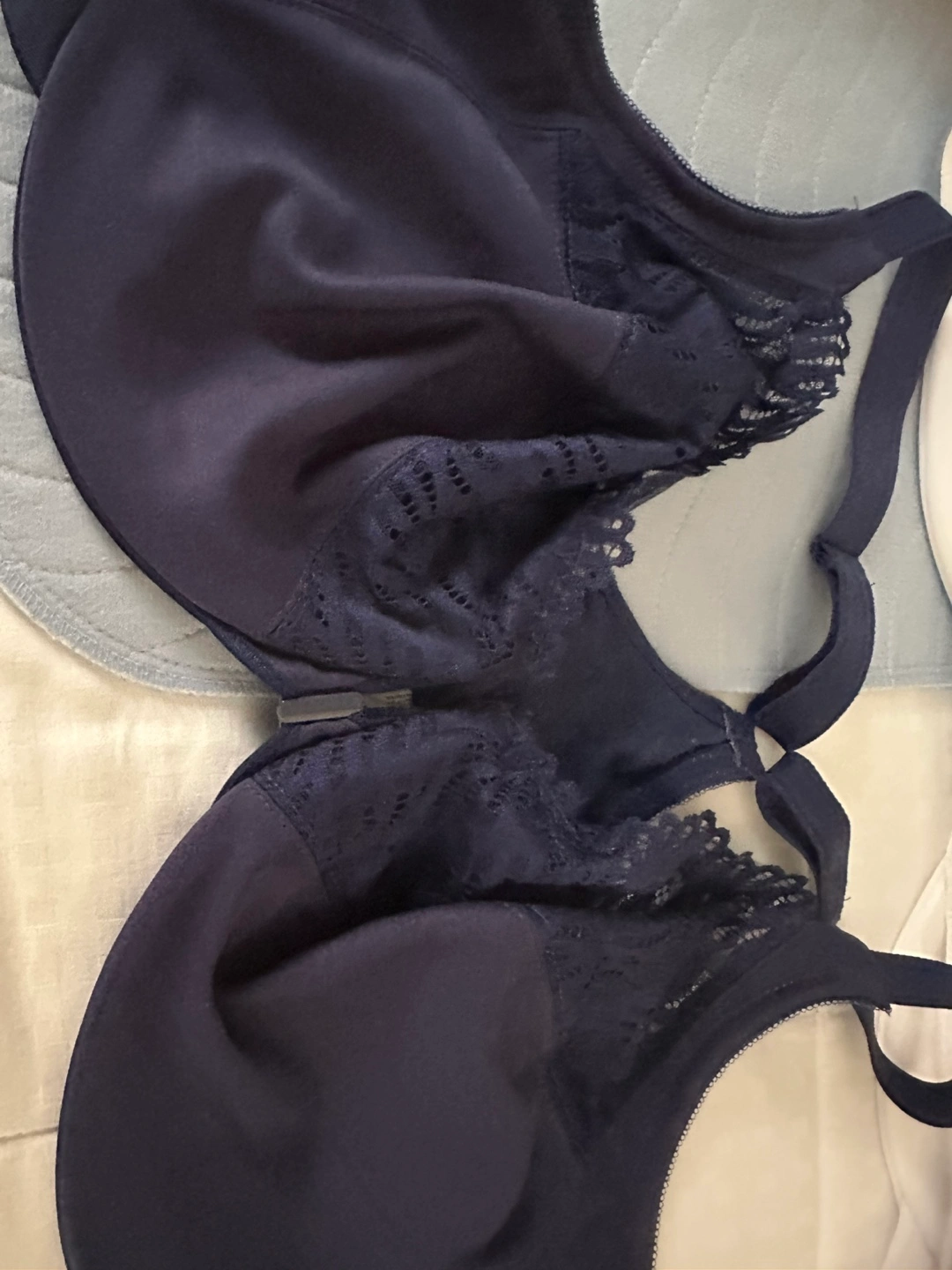 23Navy blue bra with lace detailing. Underwire with adjustable straps. front closure. Never worn.