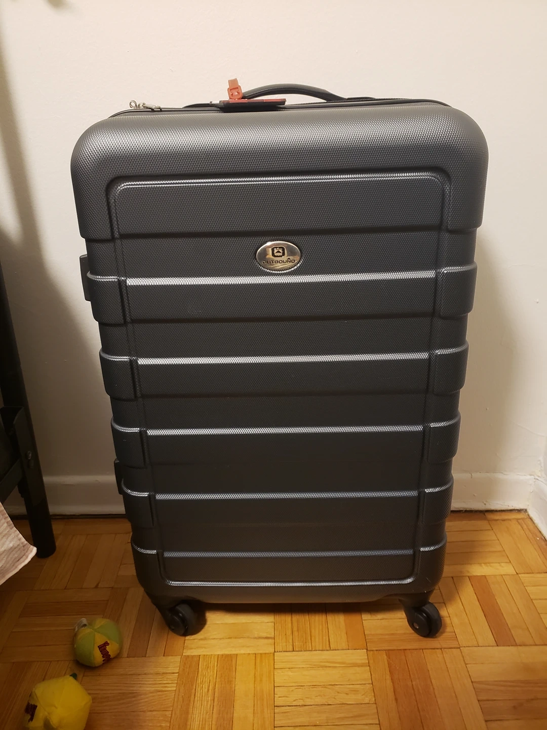 excellent condition medium check in luggage case. has never been on a flight, very light scuffs (pictured). four wheels for easy transport! comes with looped zips to add a padlock, and one half of the inside can be zipped up. will do a good offer with the purchase of my other check in for sale (large size). the medium case will fit inside the large one for storage. approximate dimensions: 16” x 10.5 x 25.5 inches Broadview/Danforth area. PICK UP ONLY. any questions please reach out