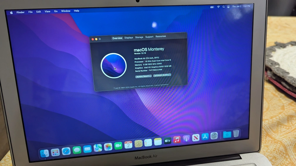 MacBook Air 13-inch, Early 2017, macOS Monterey