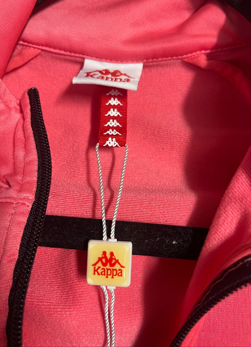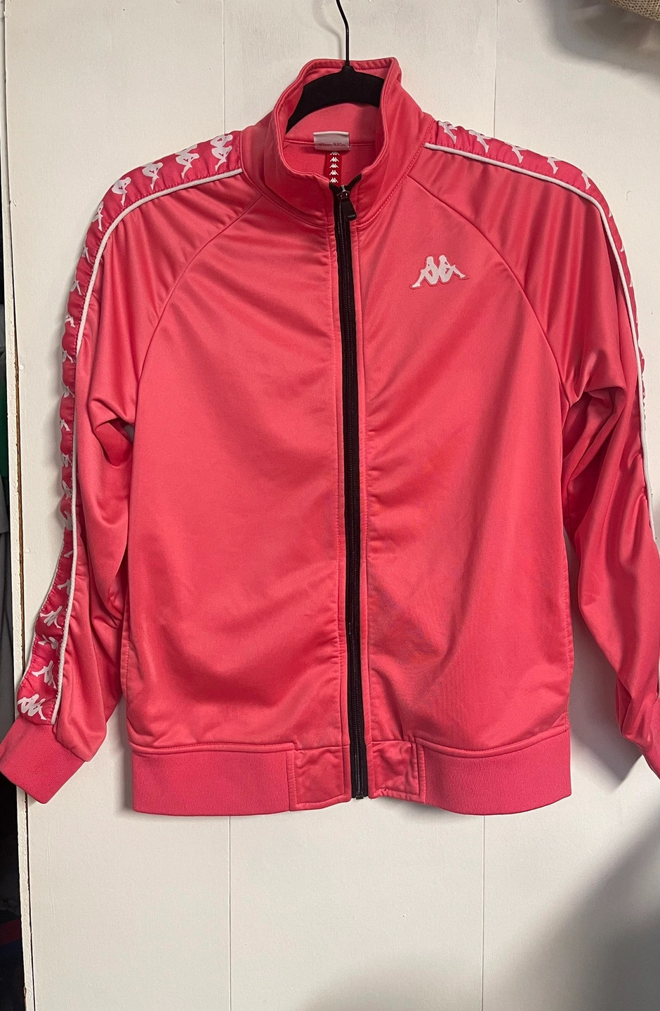 Item: Track jacket with white accents. Full zip closure. Long sleeves.