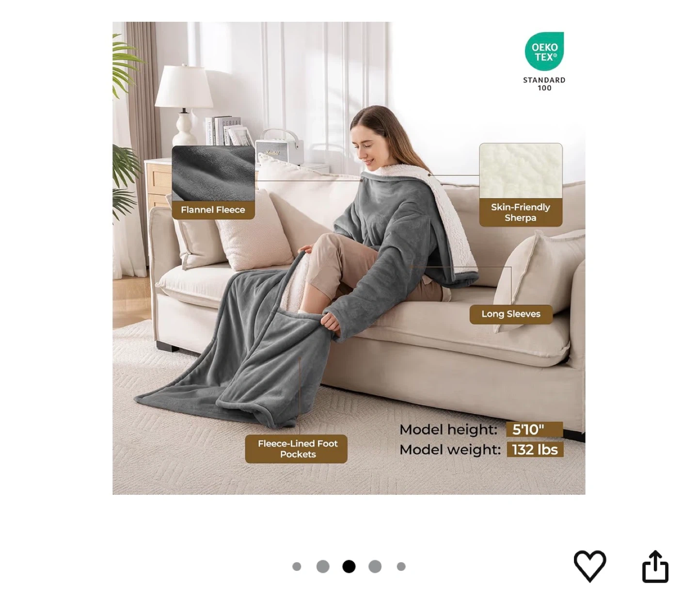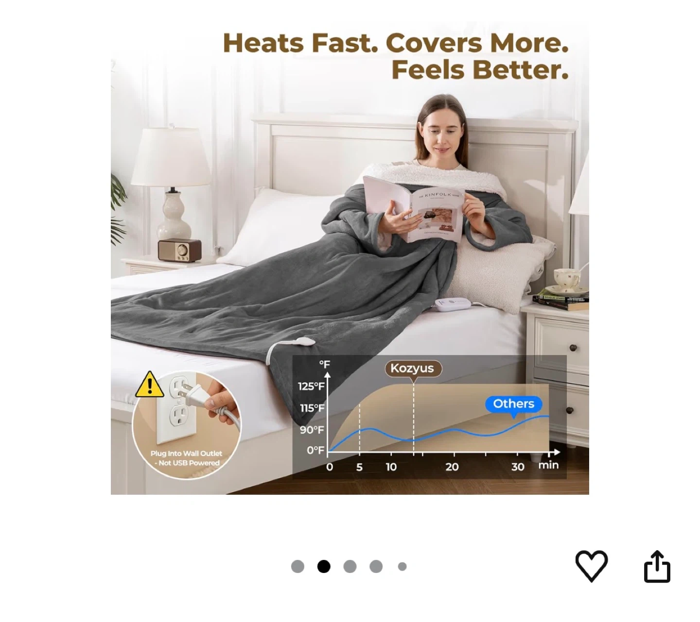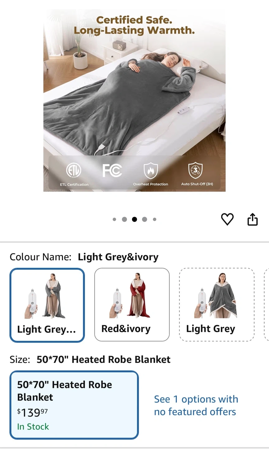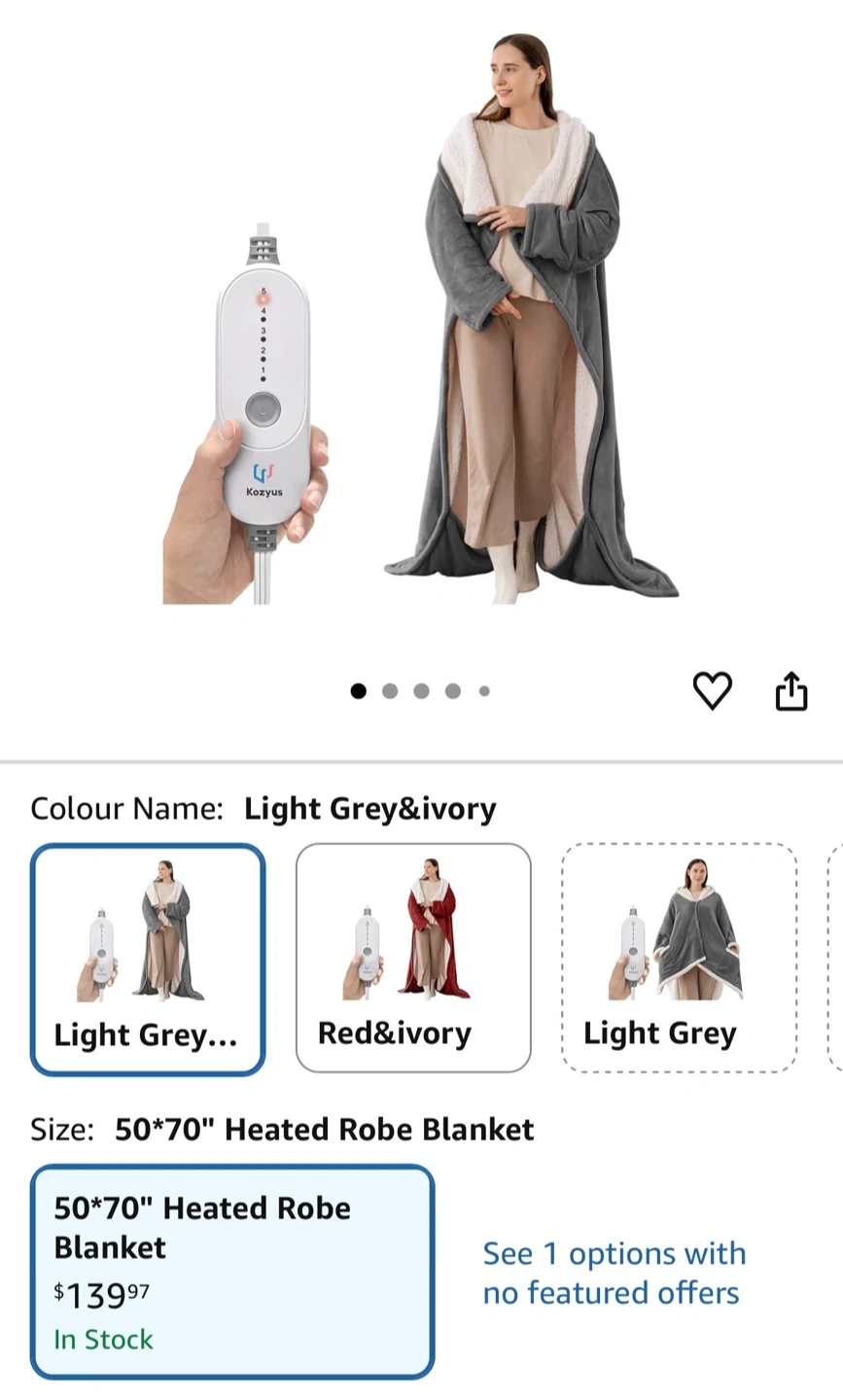 Stay cozy with this Kozyus heated robe blanket! It's made with soft flannel fleece and skin-friendly sherpa. Features long sleeves, fleece-lined foot pockets, 5 heat settings, and a 3-hour auto-off function. It's also machine washable for easy care. Perfect for chilly evenings at home!