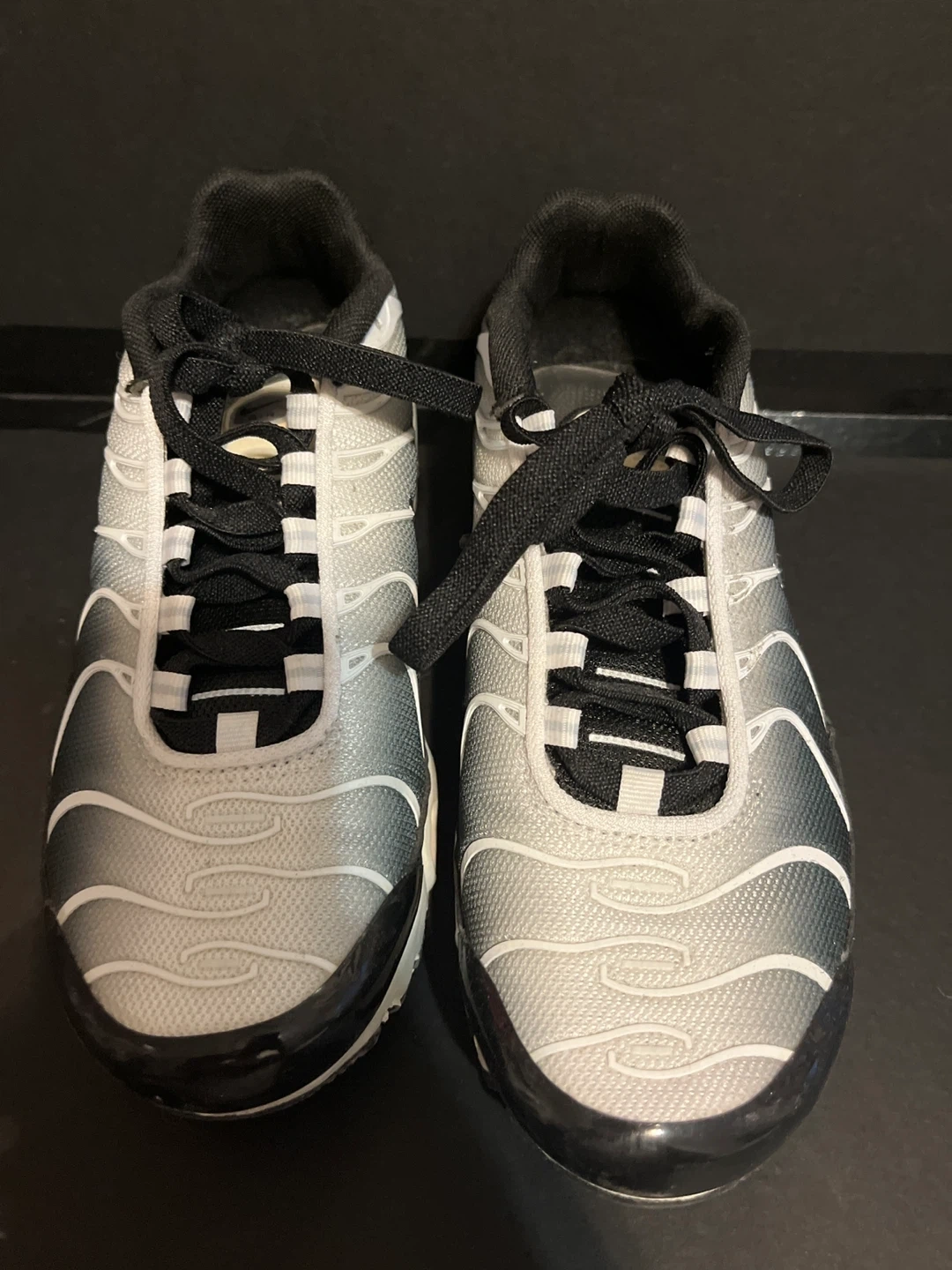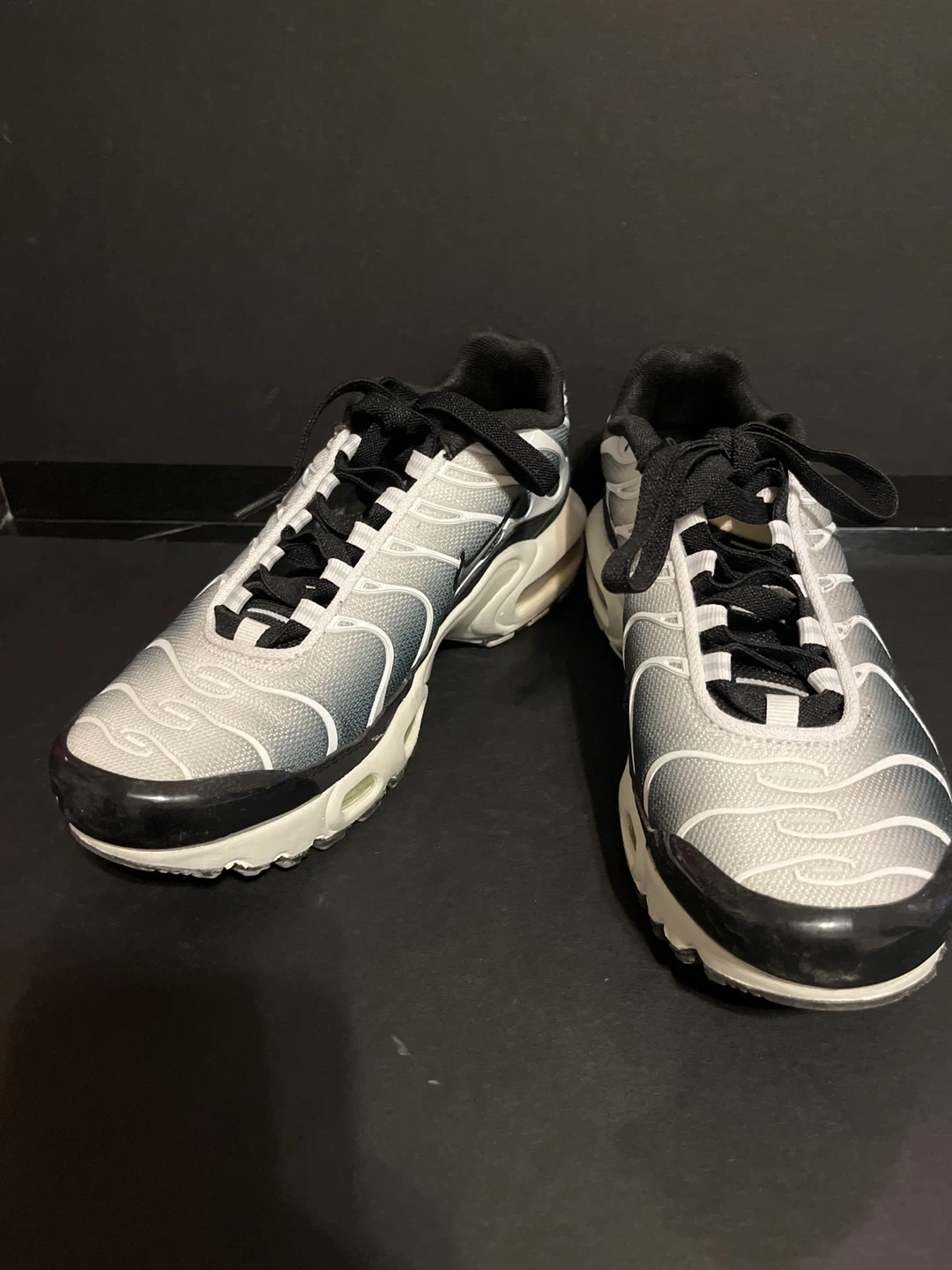 Selling a pair of Nike Air Max Plus TN sneakers in a stylish white and grey gradient. These are in great shape and ready for a new owner. Perfect for adding a touch of sporty style to your everyday look! Size 4Y