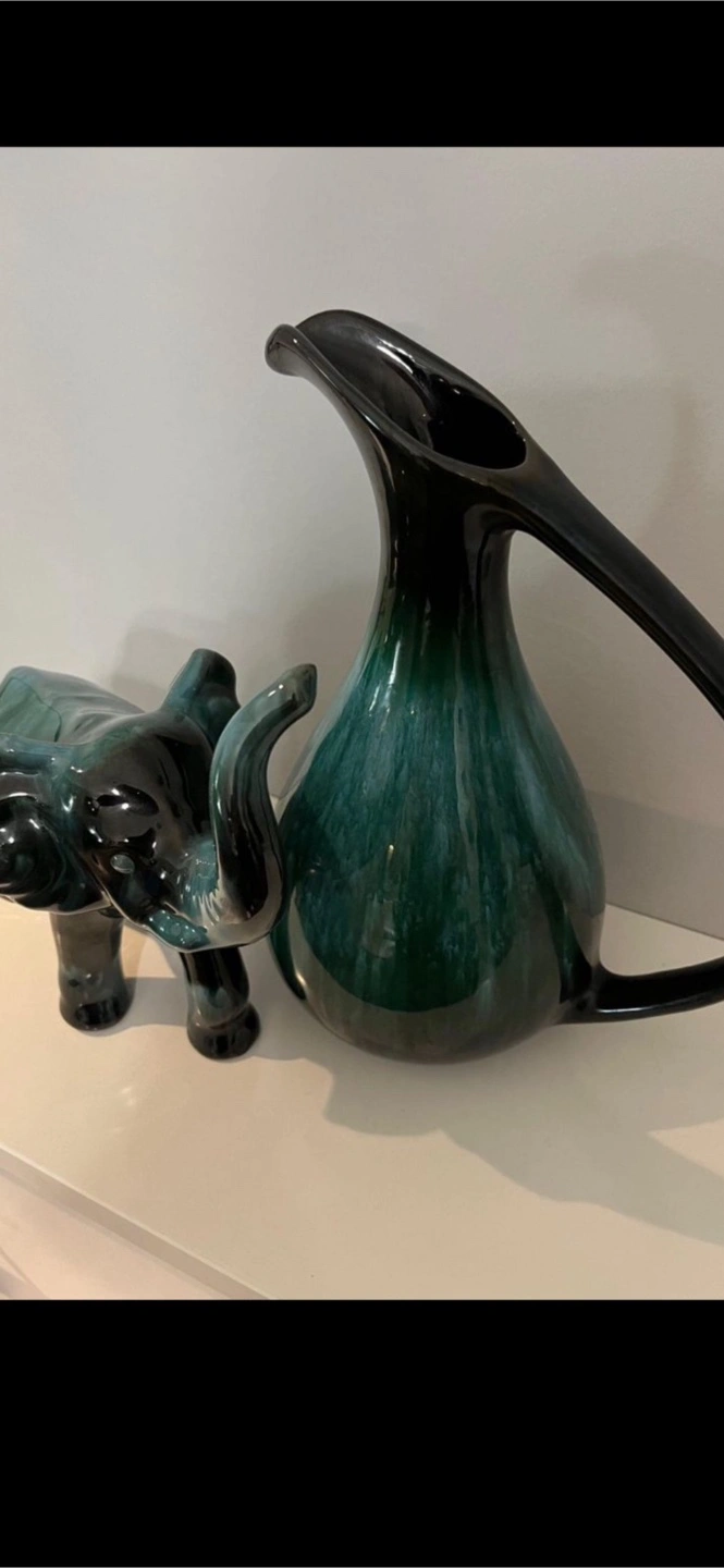 Selling a beautiful vintage ceramic pitcher with a unique blue and black glaze! It's in great shape and would make a lovely addition to any home