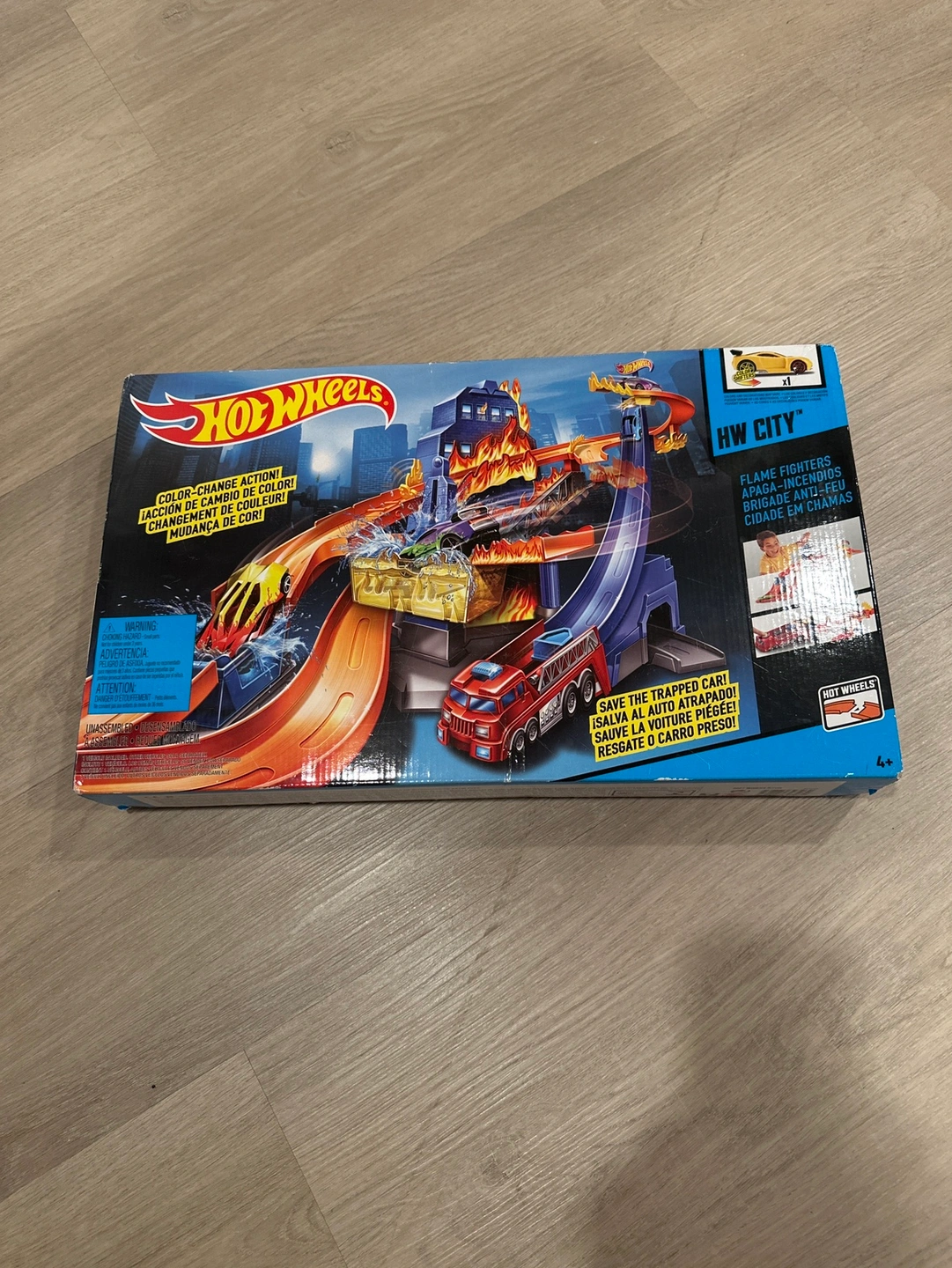 Hot Wheels HW City Flame Fighters playset with color-change action! This set features flame fighters and rescue action. It's suitable for ages 4 and up.