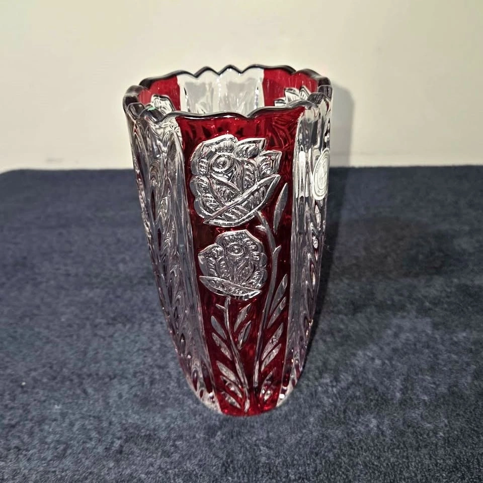 German-Made Crystal Clear Red Cut-to-Clear Vase – 24% Lead Cryst